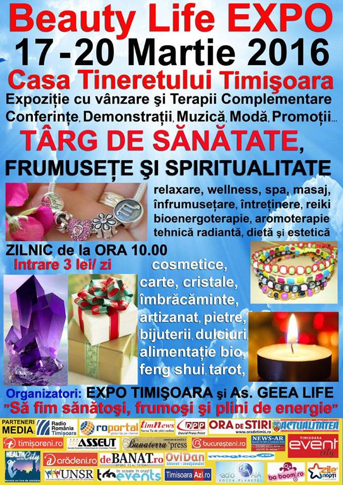 Festivalului de Spiritualitate, Medicină Alternativă şi Terapii Complementare “BEAUTY LIFE EXPO” se deschide la Timişoara în 17 martie 2016 şi promovează, pe parcursul a patru zile, o viaţă mai sănătoasă şi echilibrată.
