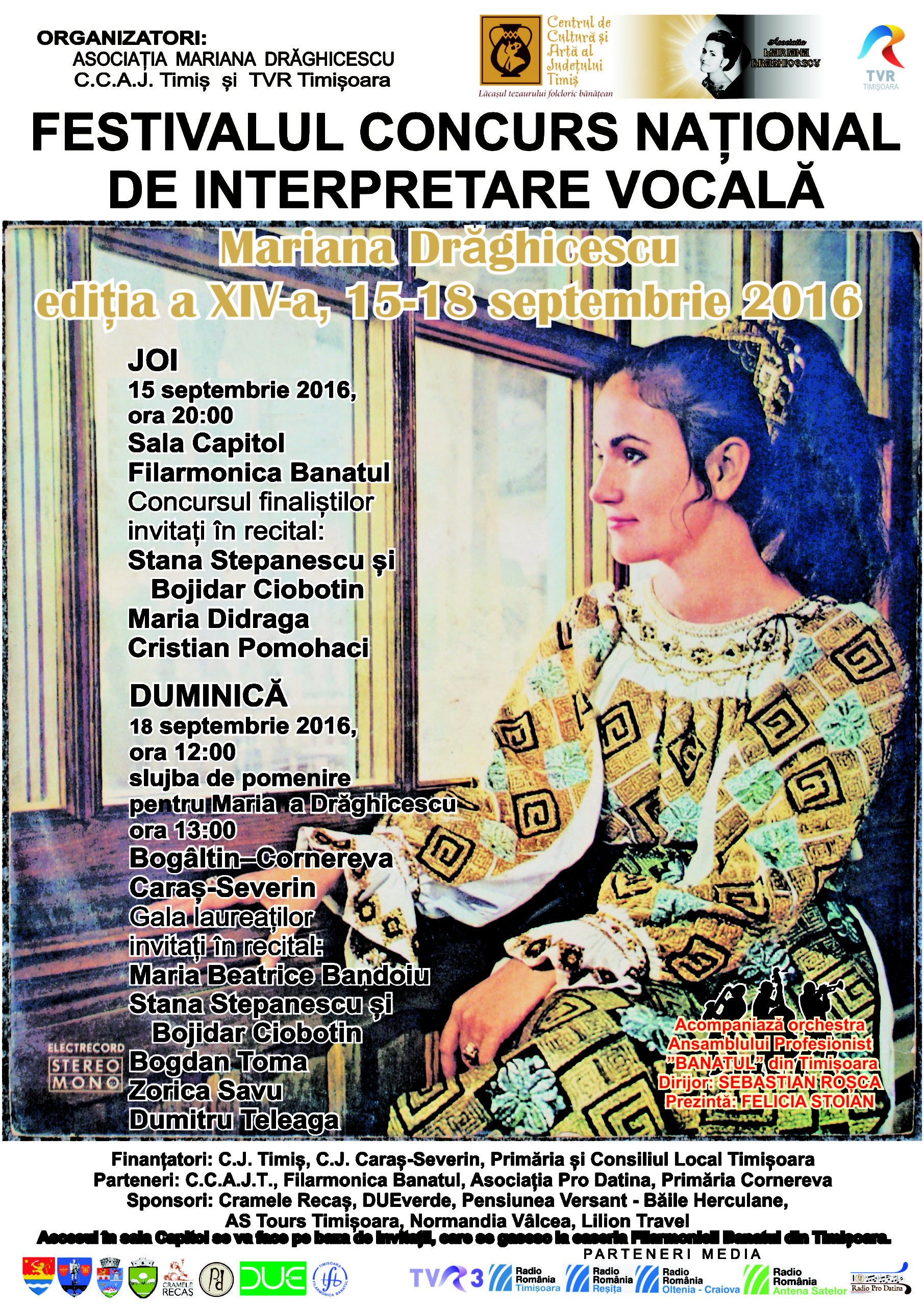 Tinerii solişti vocali din întreaga ţară cu vârsta cuprinsă între 16 şi 30 de ani sunt aşteptaţi la ediţia a XIV-a a Festivalului concurs „Mariana Drăghicescu”.
