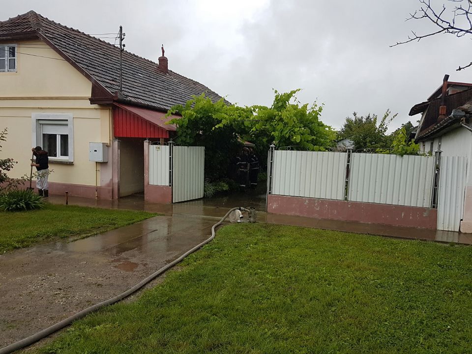 Pompierii de la ISU Banat au fost solicitați să intervină și la Giarmata unde au fost inundate mai multe gospodării de pe strada Morii, din cauza unui canal de scurgere colmatat.