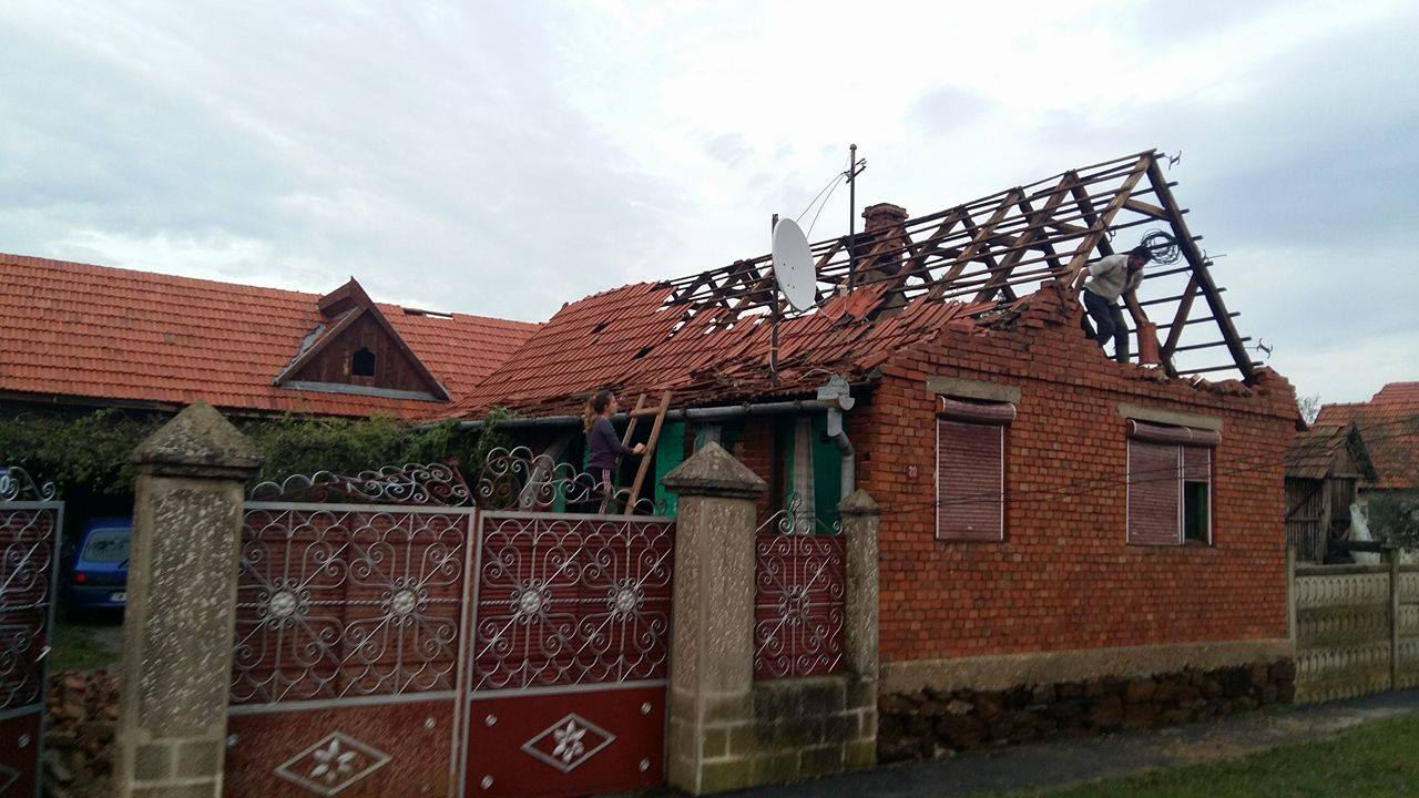 ?? Furtuna a făcut prăpăd în Timiș. Zeci de acoperișuri și turla unei biserici, smulse de vânt