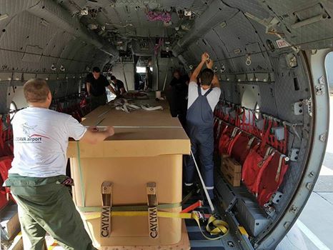 Aeronava este echipată cu şase containere a câte 1.000 de litri de apă fiecare.