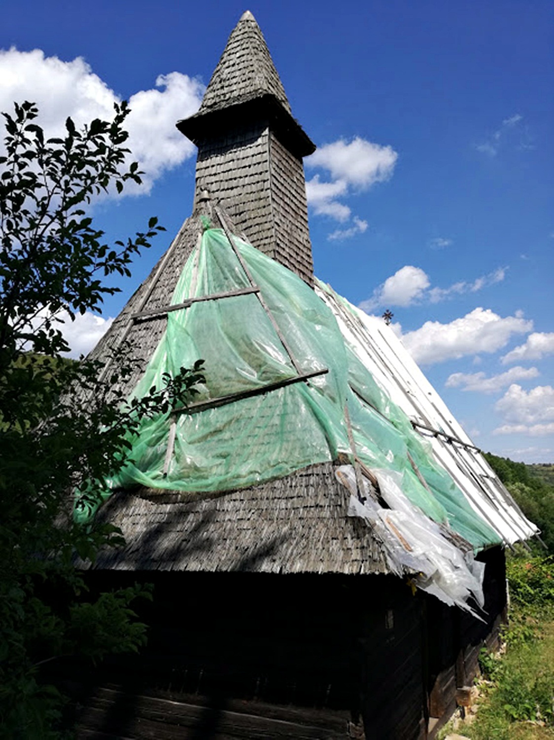 Biserica este acoperită cu şindrilă, care nu mai rezistă însă, iar pentru a salva pictura de lemn şi sculpturile din interior lăcaşul de cult a fost acoperit cu folie din plastic.