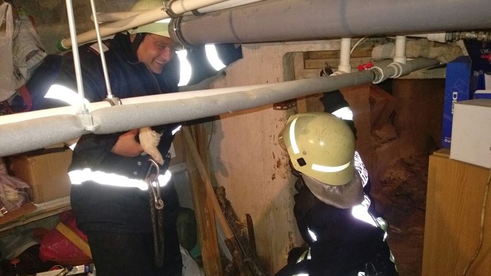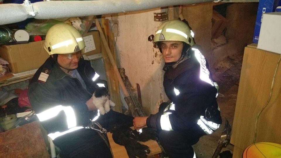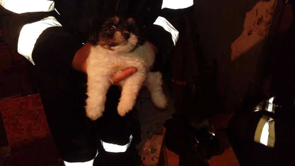 ? Cățel salvat de pompierii dintre pereții unui imobil
