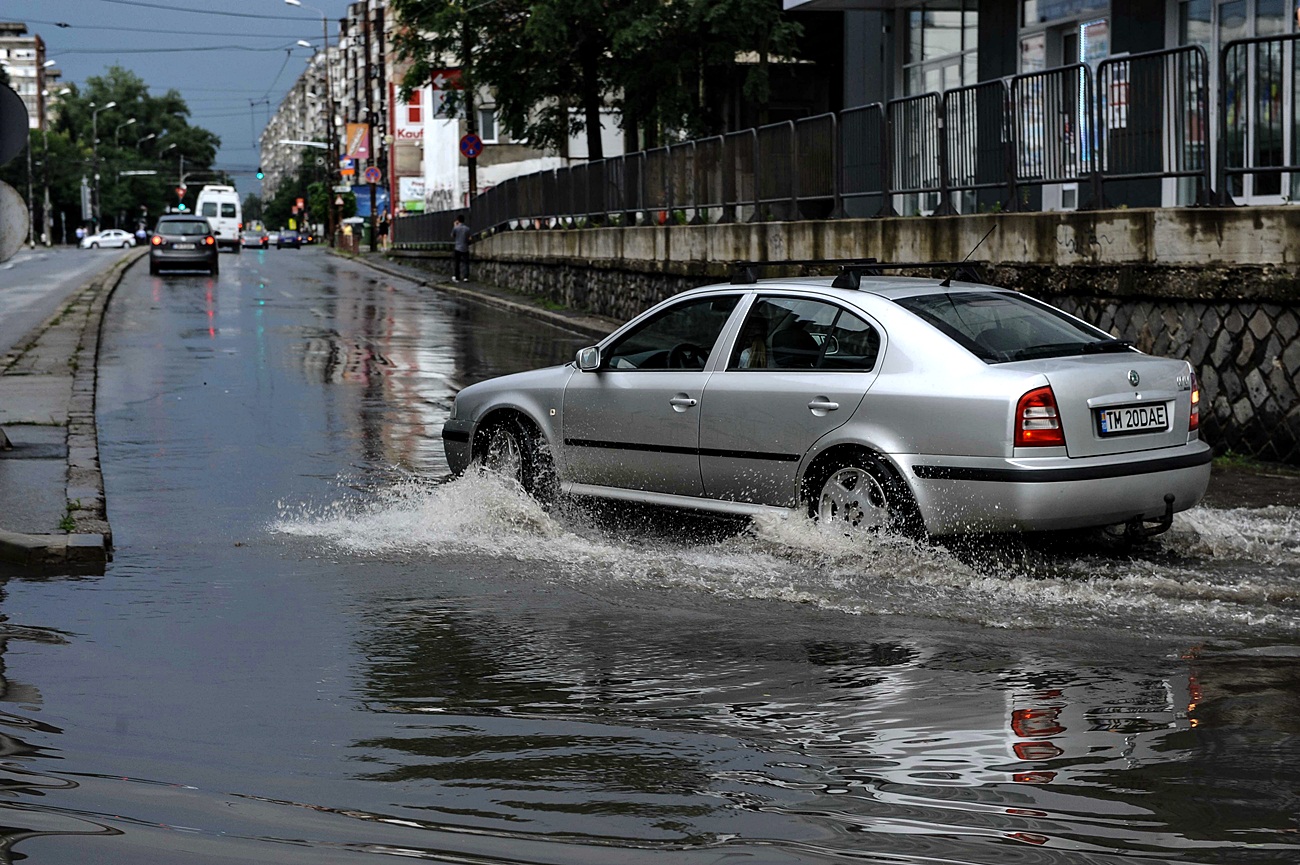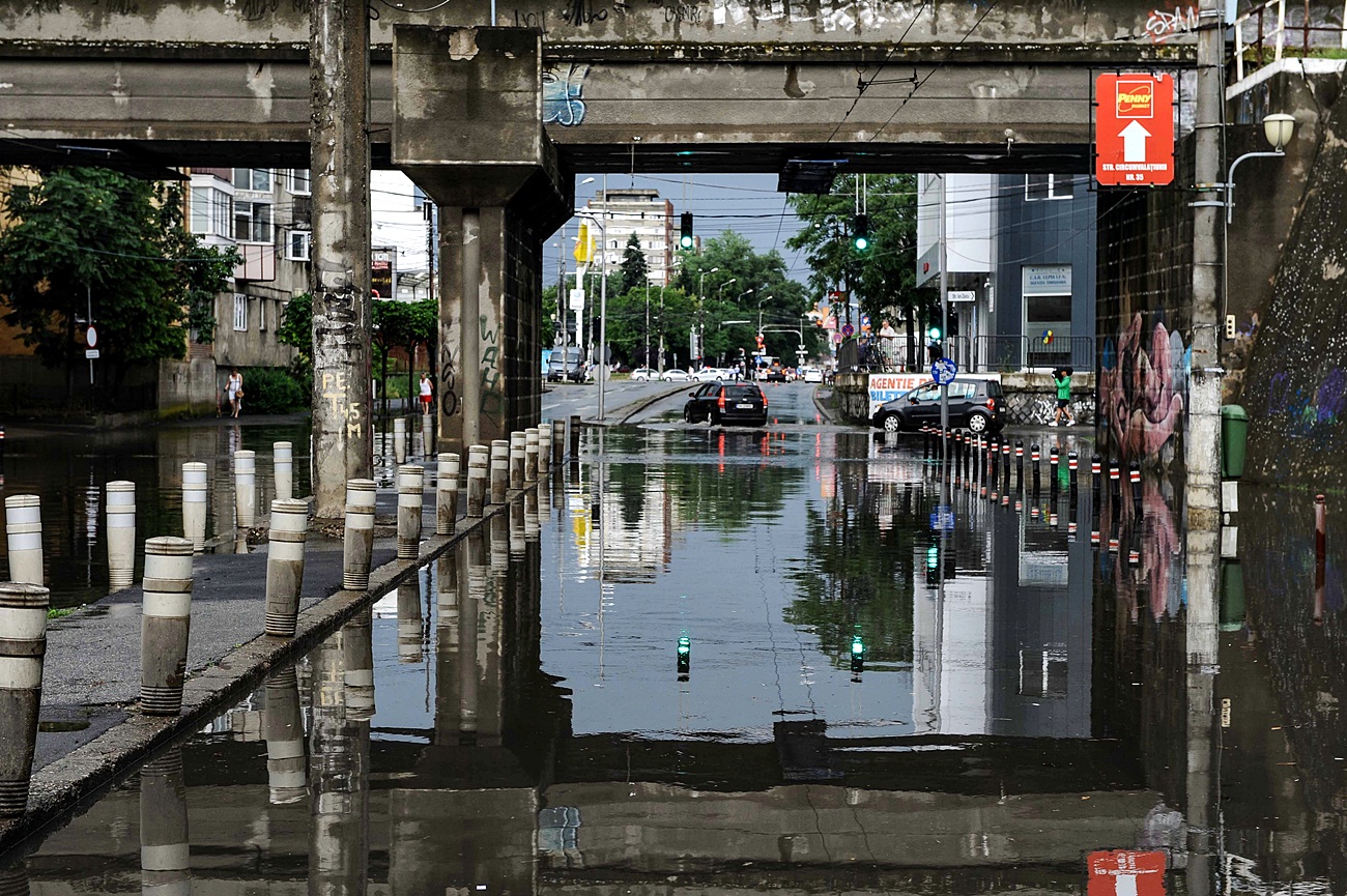 ? Ploaia torențială a inundat din nou pasajele rutiere din Timișoara