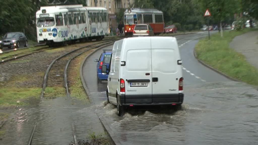 Două pasaje şi o zonă mai joasă din apropierea unui pod au fost inudate, iar apa a depăşit chiar şi 70 de cm. Circulaţia maşinilor şi a tramvaielor a fost blocată circa o oră.