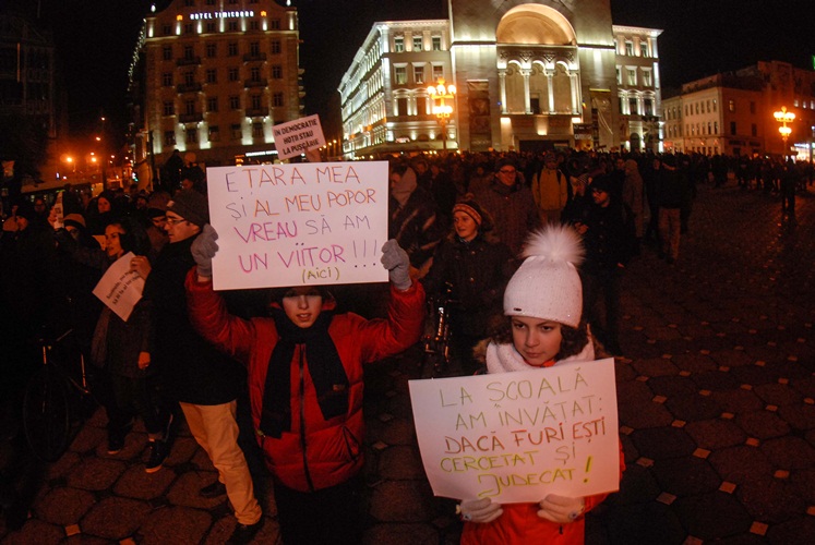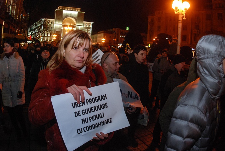 Protestatarii au huiduit guvernul și au purtat afișe pe care au scris mesaje precum “În democrație, hoții stau la pușcărie” sau “Vă rugăm să ne scuzați, nu producem cât furați!”. Participanții la protest au plecat apoi în marș prin Piața Victoriei. S-a luat decizia întocmirii unei “Petiții a statului de drept”, pe care au fost invitați să o semneze toți cei prezenți.