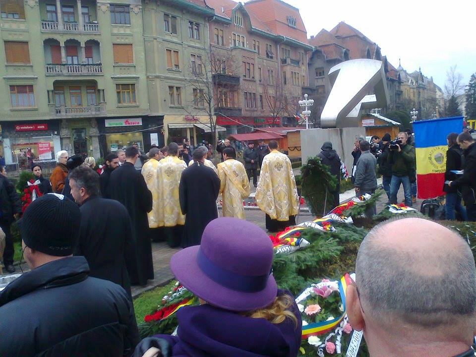 Este o zi de doliu astăzi, în Timişoara. Este o zi în care noi, timişorenii dar, cred că orice cetăţean al acestei ţări, trebuie să purtăm un gând pios celor ce şi-au sacrificat viaţa pentru ca noi să fim astăzi liberi. Ziua de 17 decembrie 1989 a fost ziua în care au fost date primele jertfe umane pe altarul luptei pentru libertate şi aici, în Timişoara au fost primii care s-au sacrificat.