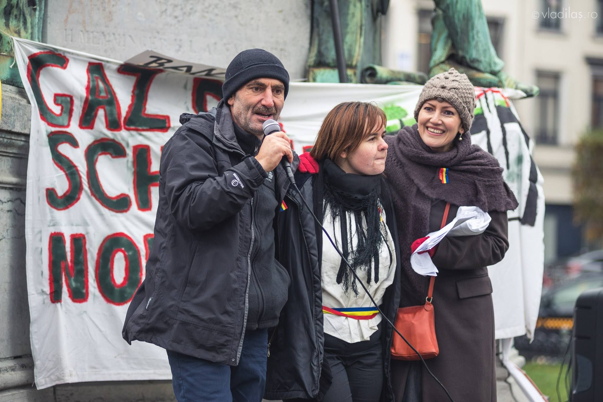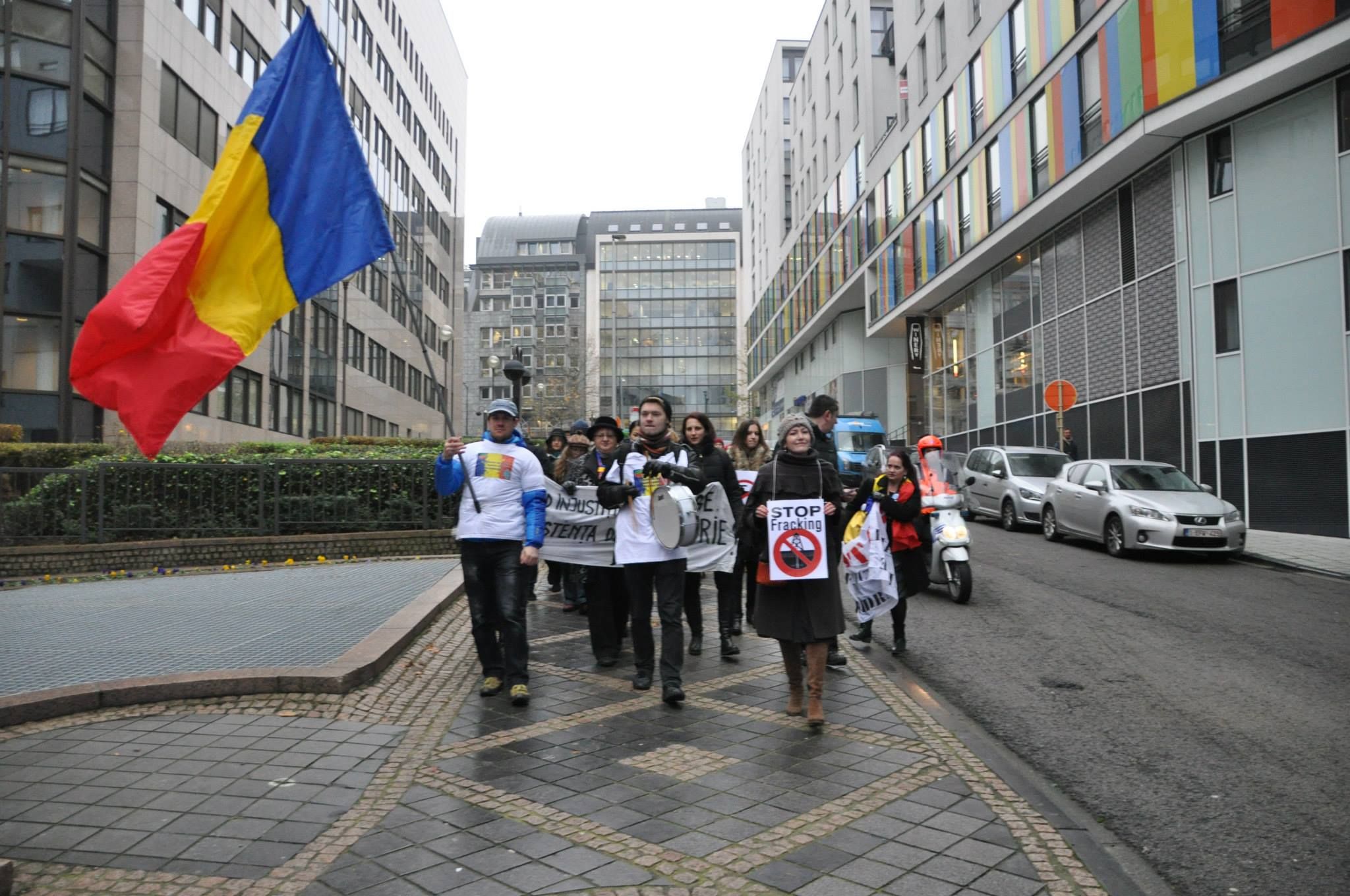 “Stop fracking. Respect Earth”. Sunt doar două dintre sloganurile care s-au auzit în fața Parlamentului European de la Bruxelles. Un grup de activiști condus de Doru Apostol și Alexandru Popescu au protestat împotriva exploatării de la Roșia Montană și a gazelor de șist. Alexandru Popescu a parcurs pe jos aproximativ 3.000 de kilometri până în fața Parlamentului European, călătorie care a început pe 30 august și s-a încheiat pe 1 decembrie. Tot pe jos a ajuns și scoțianul Geza Tarjany, susținând efortul comun de a arăta lumii întregi efectele exploatării gazelor de șist prin fracturare hidraulică.