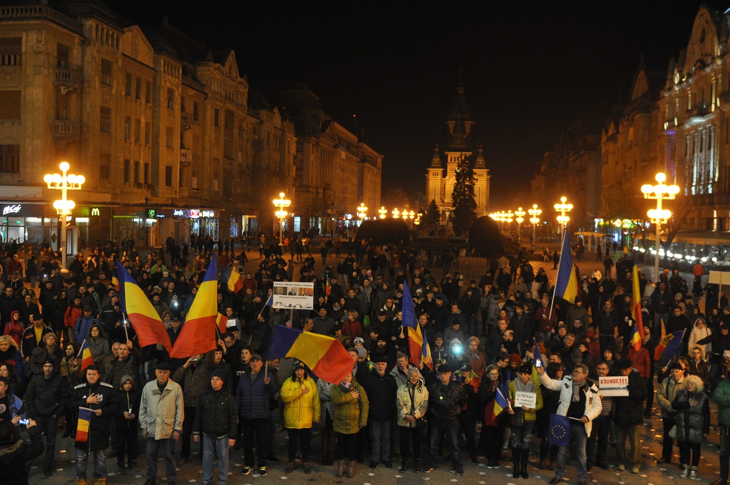 “Timişoara civică sub semnul ‘#rezist’ a ieşit din nou în stradă, pentru că guvernanţii lucrează în taină la legile justiţiei pe repede înainte, am ajuns să fim conduşi de infractori, care nu au responsabilitatea civică, ci doar a rudelor, iar noi ajungem să ieşim în stradă pentru a le atrage atenţia să legile nu se fac pentru un grup oameni sau de interese. Au eliberat din puşcării infractori sub pretextul că nu sunt locuri în detenţie. Dacă au văzut că nu pot trece legea graţierii, le-au acordat facilităţi puşcăriaşilor, iar acest ministru al Justiţiei este de o perversitate maximă”, a spus Cristi Brâncovan, unul dintre organizatorii protestelor de la Timişoara.