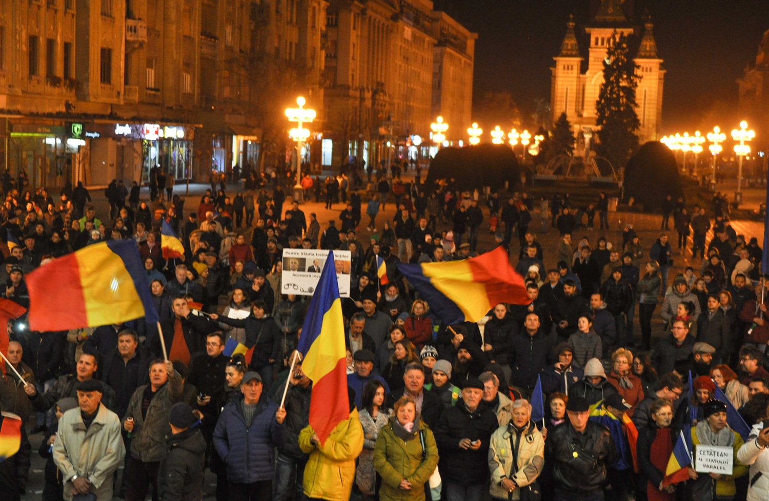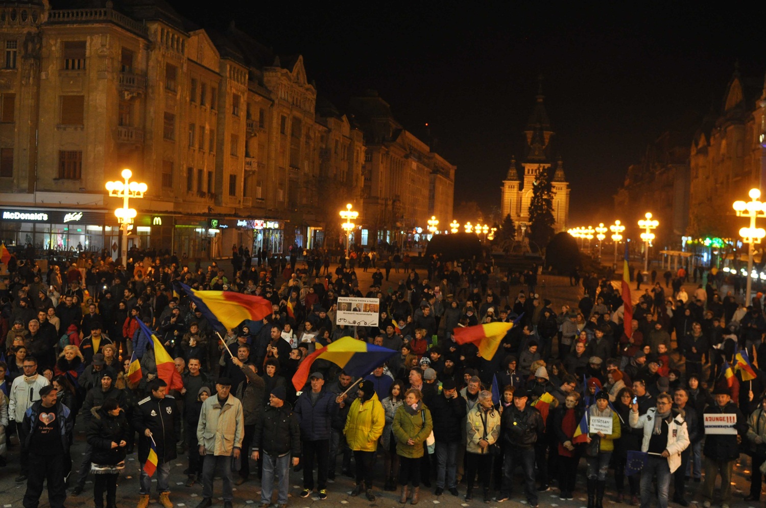 Aproximativ 1.000 de timişoreni s-au strâns aseară în Piaţa Operei din Timişoara pentru a treia duminică consecutiv.