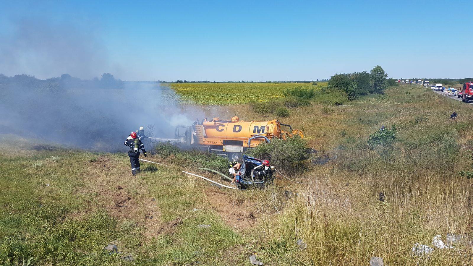 ISU Timiș a intervenit cu două autospeciale de stingere cu apă și spumă pentru lichidarea incendiului, două autospeciale de descarcerare, trei echipaje SMURD, o autospecială de stingere cu apă și spumă de la SVSU Moșnița Nouă, și 25 de pompieri.