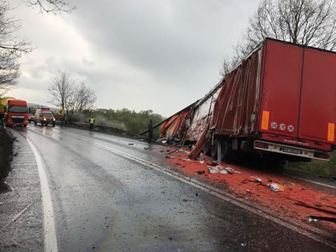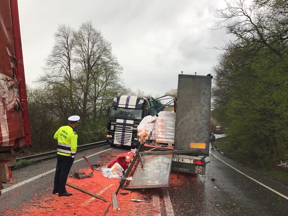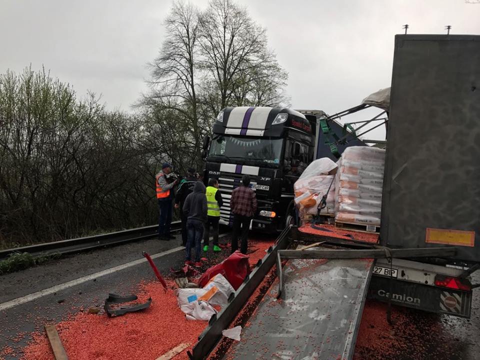 ? Accident în Arad. Trei TIR-uri au intrat în coliziune