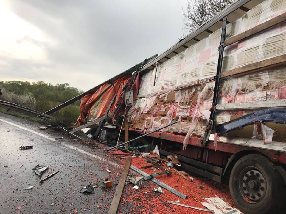 Accidentul s-a produs pe DN 7, între localitățiel Lipova și Odvoș. Două trenuri au intrat în coliziune, iar cel de-al treilea s-a izbit ulterior de cele două.