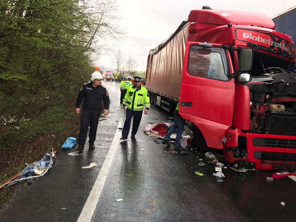 Traficul rutier a fost blocat după producerea accidentului. Polițiștii cercetează acum cauzele producerii accidentului.