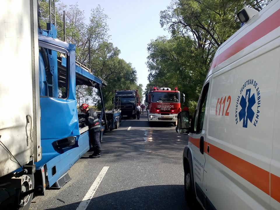 ? Coloane de maşini între Arad şi Oradea după ce trei TIR-uri s-au ciocnit