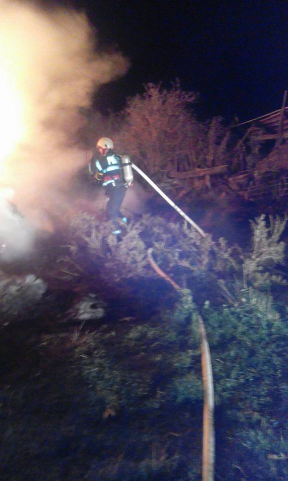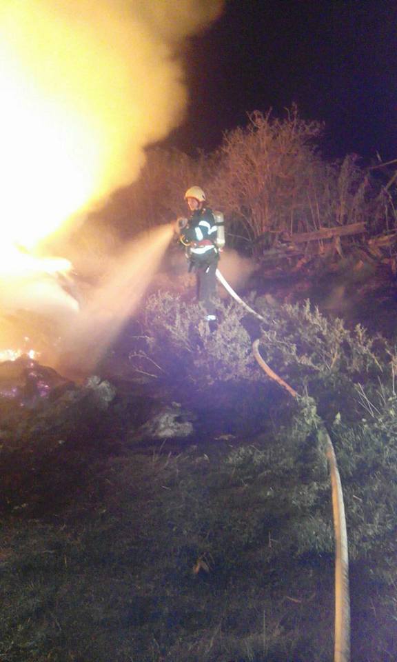 Pompierii de la Inspectoratul pentru Situații de Urgență intervin pentru lichidarea focului care a cuprins un depozit în care se află aproximativ 3.000 de baloți de lucernă și fân.