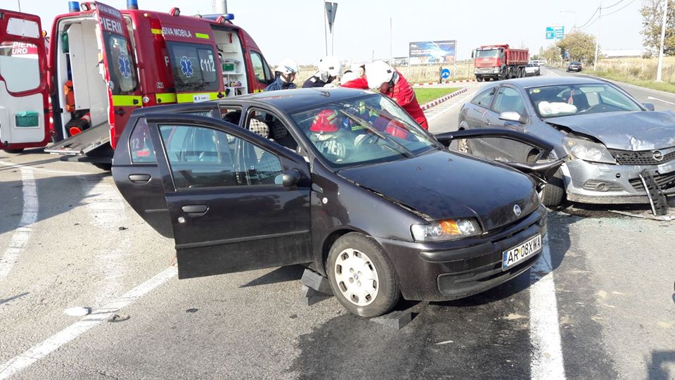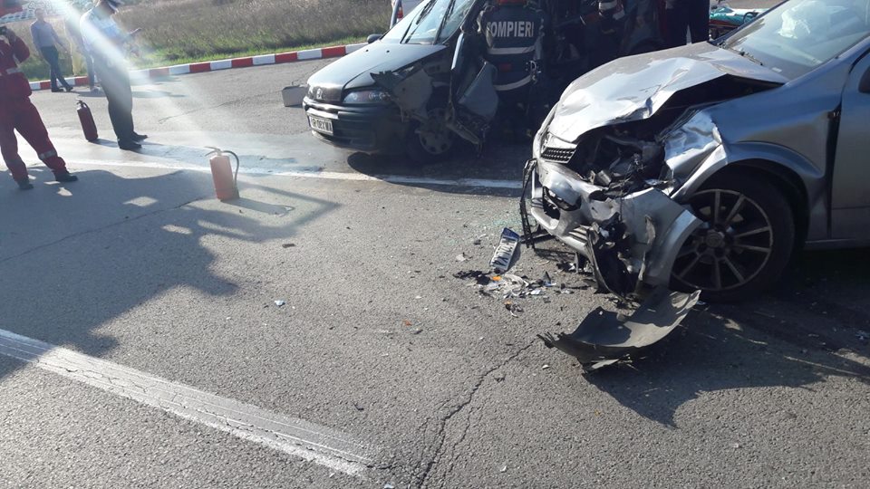 Un grav accident s-a produs, în aceasta după-amiază, în Ghiroda, pe drumul care face legătura între Timișoara și aeroport. În accident au fost implicate două autoturisme în care se aflau șase persoane.