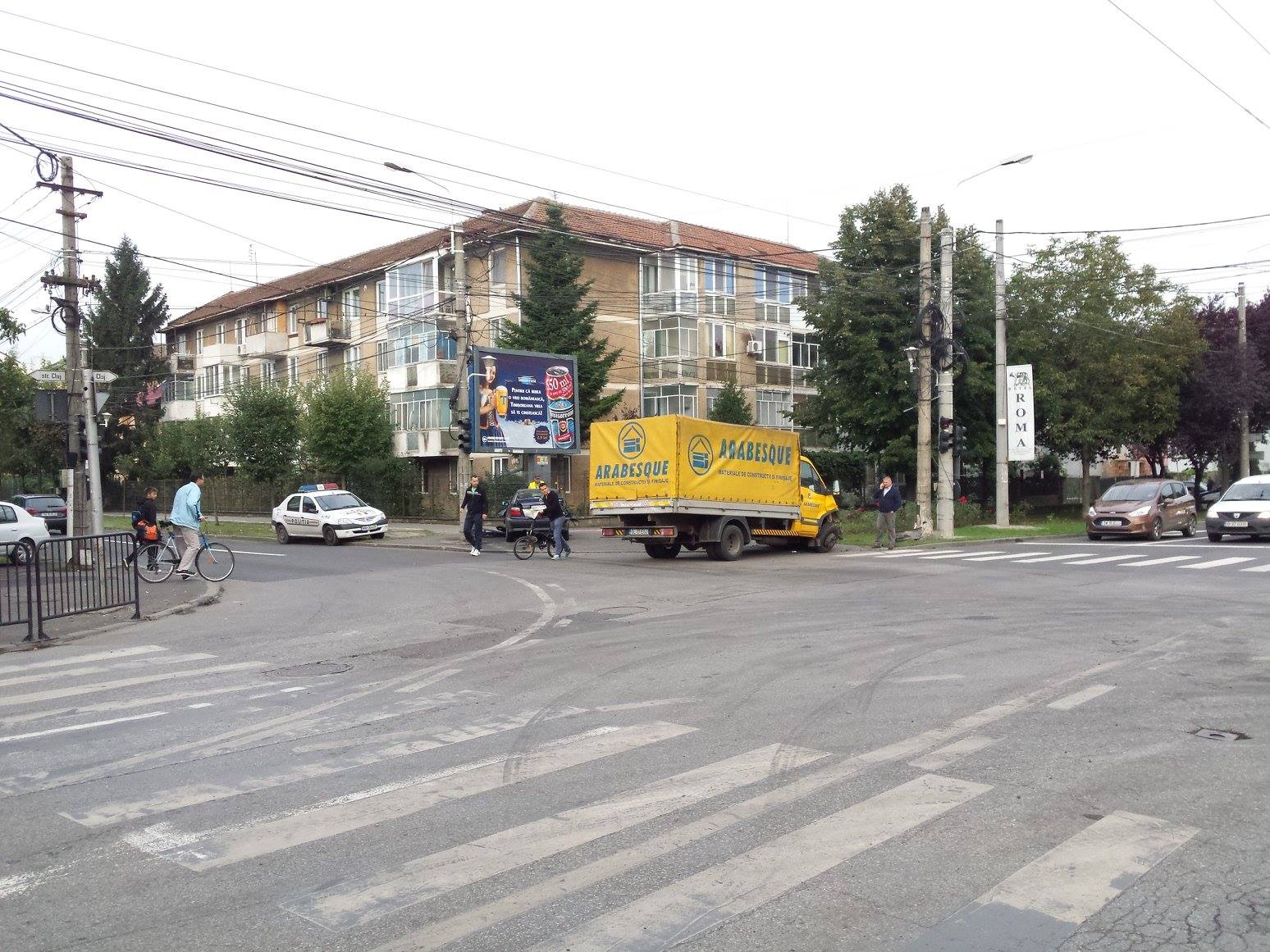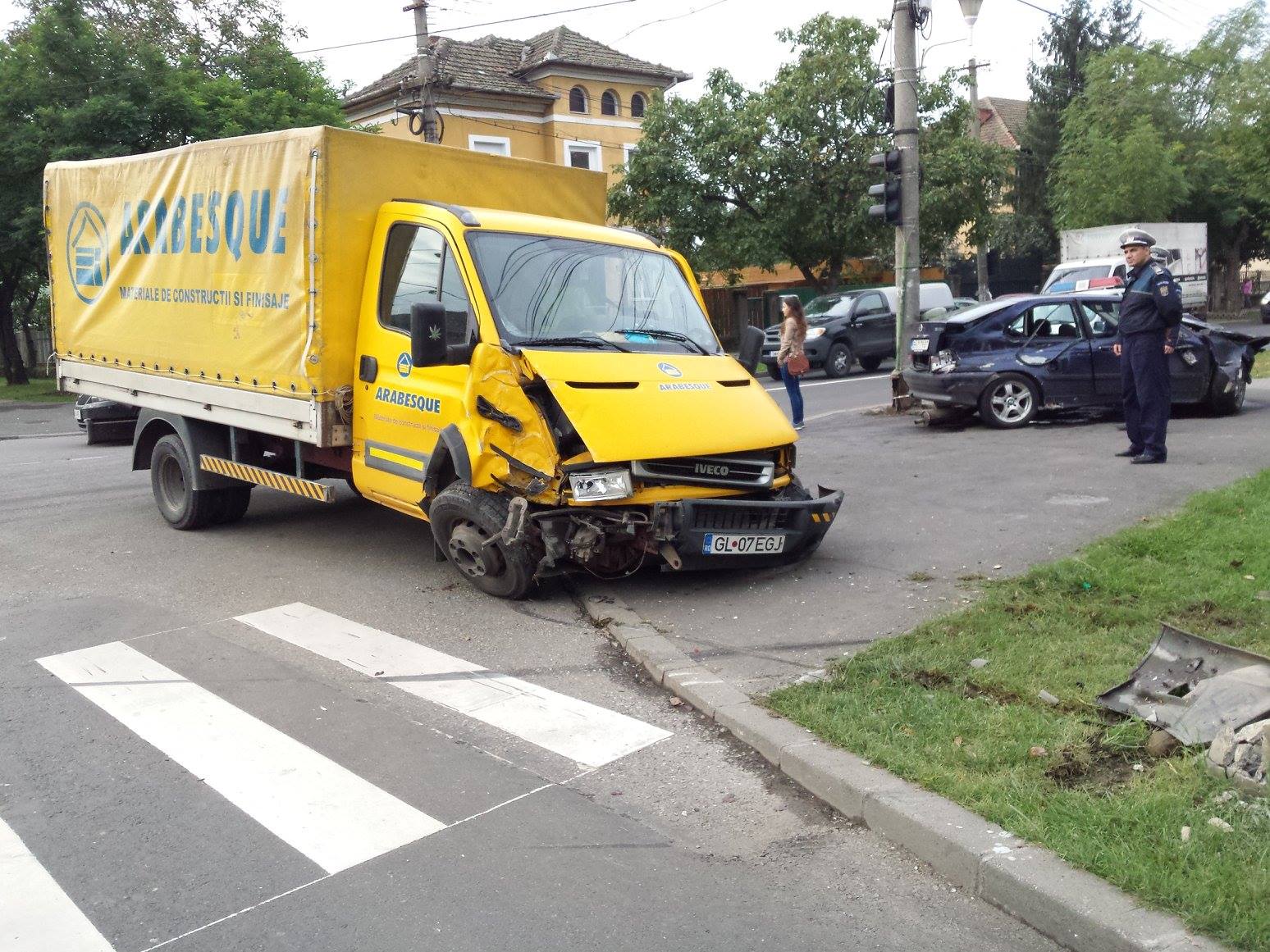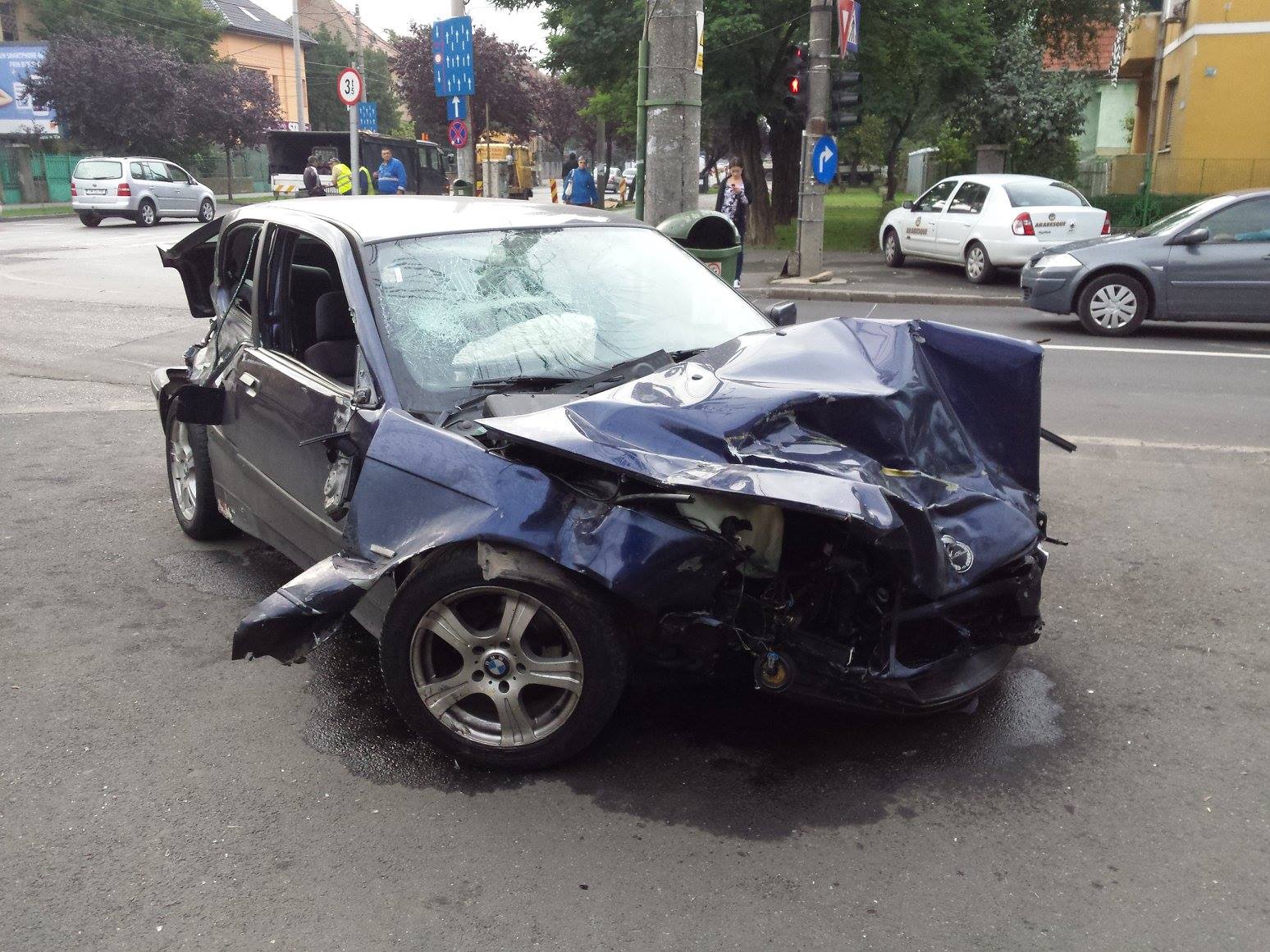 Două persoane au ajuns, miercuri, la spital, în urma unui accident de circulație, produs la intersecția străzii Cluj, cu strada Eroilor de la Tisa din Timișoara. Șoferul unui BMW, care circula dinspre Spitalul Județean, spre Michelangelo, pe banda destinată taximetrelor și autobuzelor, se pare că a intrat în intersecție pe culoarea roșie a semaforului. BMW-ul s-a izbit violent de o camionetă, care venea dispre strada Eroilor de la Tisa. În urma impactului puternic, autoutilitara a fost proiectată într-un stâlp, care s-a rupt. O femeie de aproximativ 55 de ani, care se afla pe trotuar, a fost izbita de unul din autovehicule. E asemenea, șoferul din BMW, un bărbat de 40 de ani, a fost rănit. Ambele victime au fost preluarte de ambulanțe și transportate la spital, pentru îngrijiri medicale. Martorii susțin că șoferul BMW-ului circula cu viteză, și că acesta ar fi intrat pe culoarea roșie a semaforului, în intersecție. Șoferița autoutilitarei implicată în accident spune că a plecat de la semafor, pe culoarea verde, și că nici nu a apucat să observe BMW-ul.