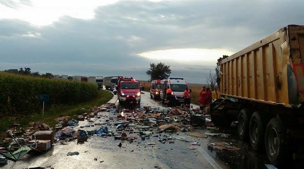 ACCIDENT: Două tiruri s-au izbit pe DN 7 în judeţul Arad