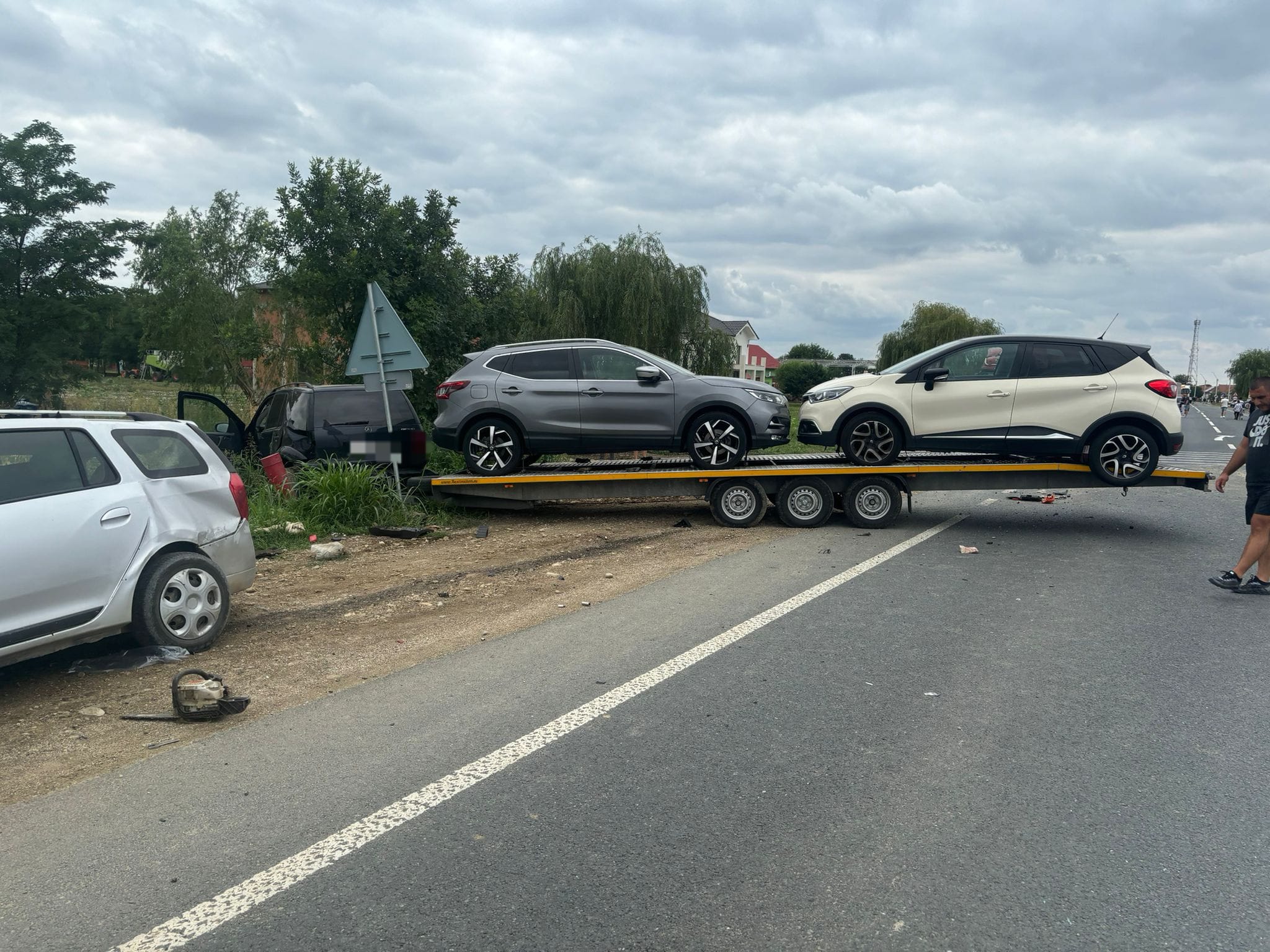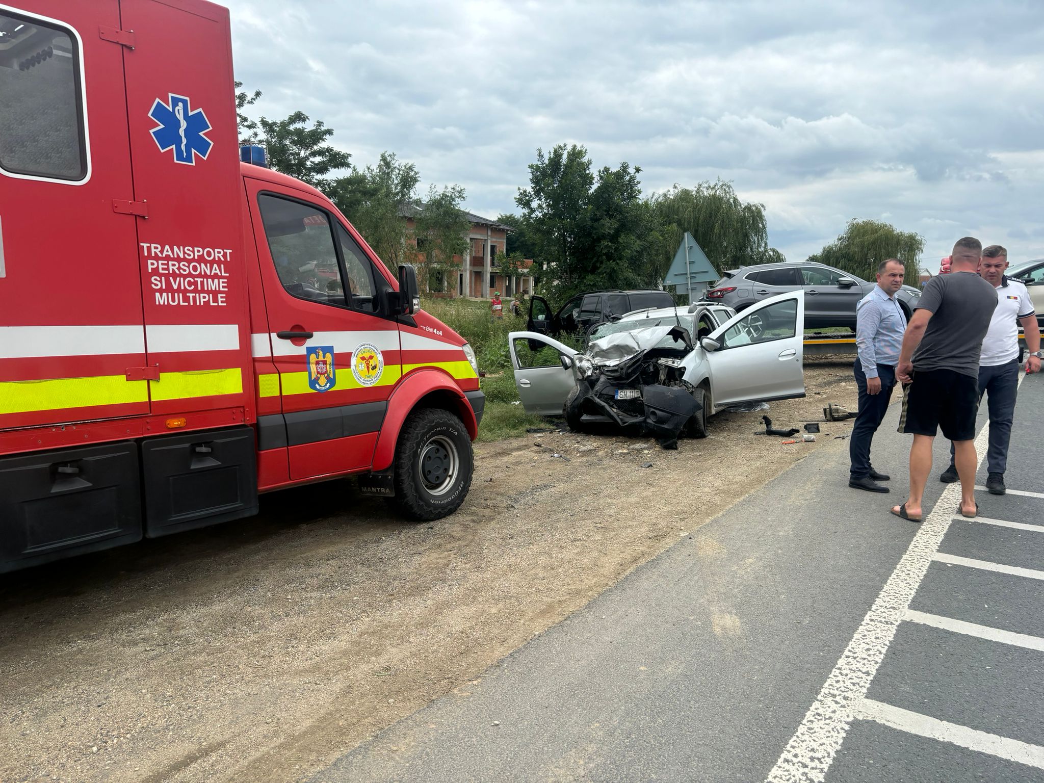 În urma impactului, autospeciala s-a răsturnat, iar autoturismul condus de bărbatul de 56 de ani a fost proiectat pe sensul opus de circulație, unde a intrat în coliziune cu un alt autoturism ce tracta o remorcă încărcată cu două autovehicule, condus de un bărbat de 34 de ani.