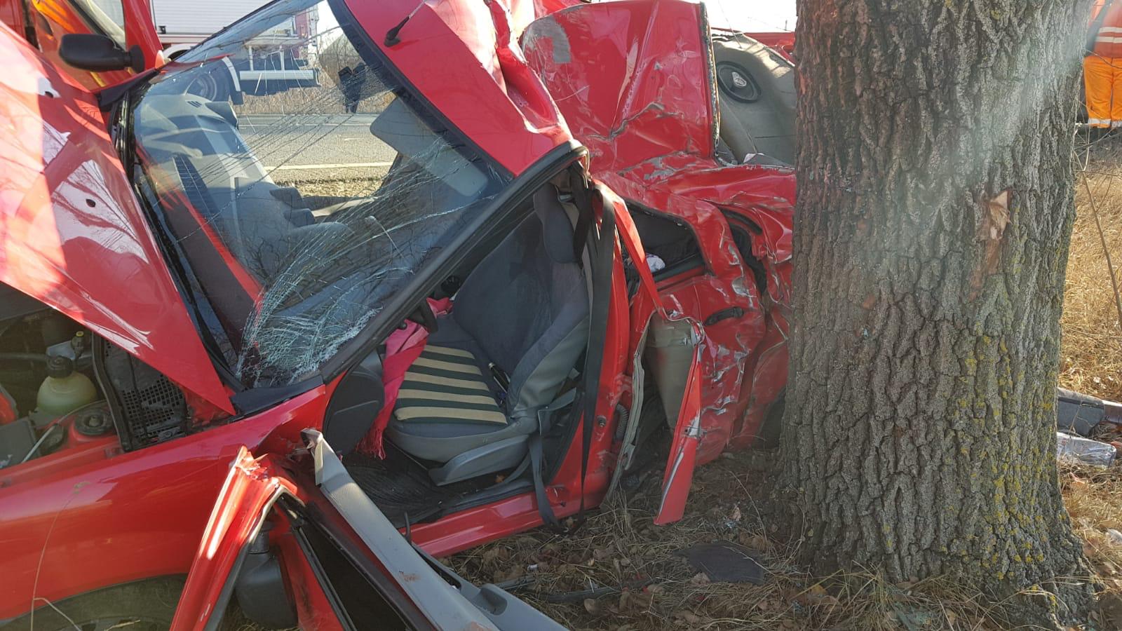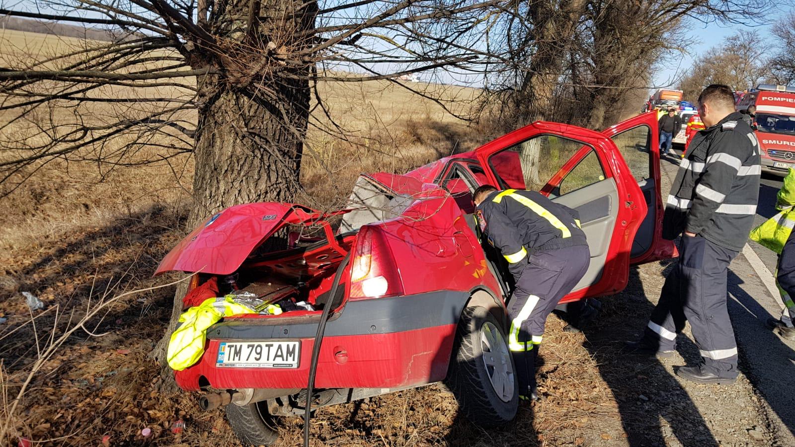 O mașină a ieșit de pe carosabil și a intrat într-un copac, un bărbat de 69 de ani și o femeie de 64 de ani, fiind grav răniți. Potrivit primelor informații, din cauza neatenției în conducere, șoferul din Timișoara, care circula dinspre Oradea către Arad, a pierdut asupra mașinii și a intrat în copac, autoturismul fiind distrus complet.