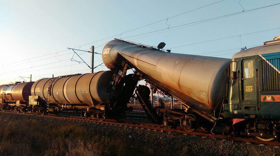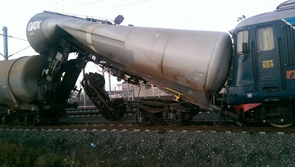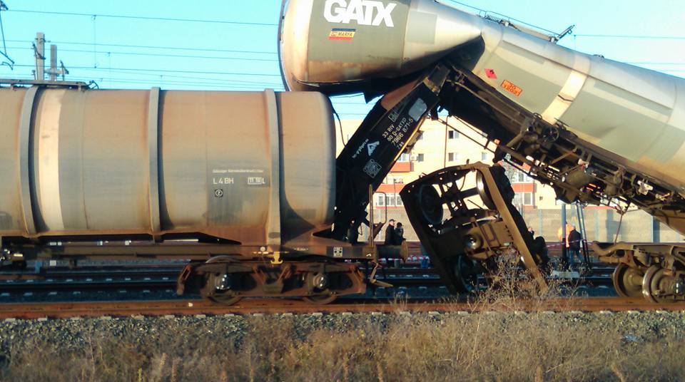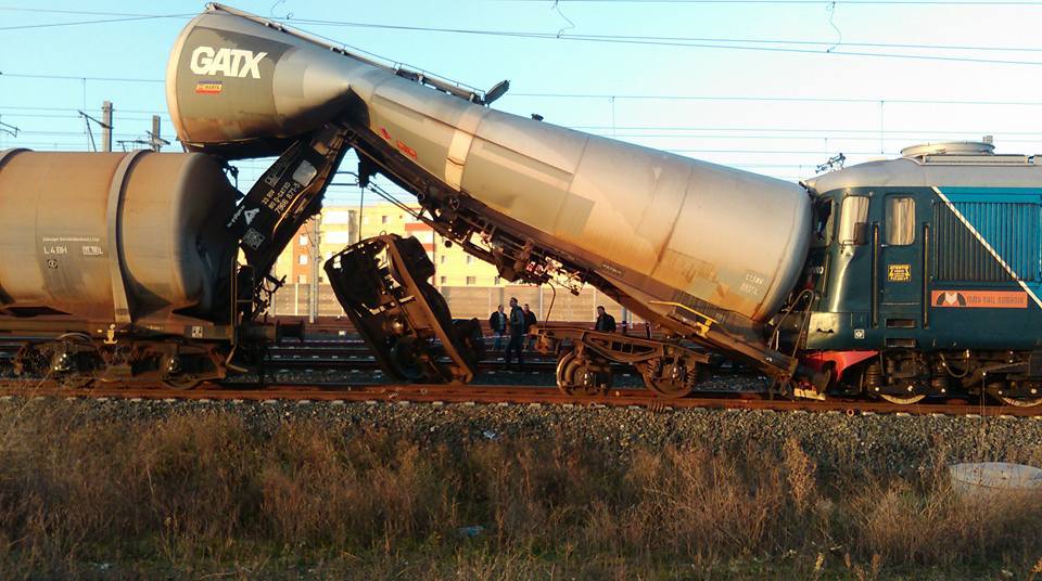 ? Accident în Gara din Arad: O locomotivă a lovit o garnitură de cisterne pline cu motorină. Mecanicul și șeful de tren erau sub influența alcoolului