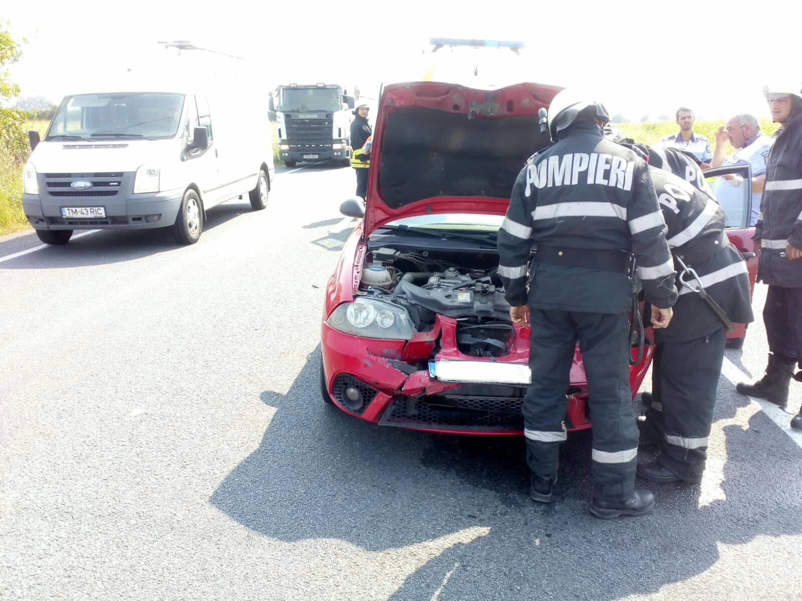 Pompierii au intervenit cu o autospecială cu modul de descarcerare, un ofițer și cinci subofițeri, precizează reprezentanții ISU Timiș.