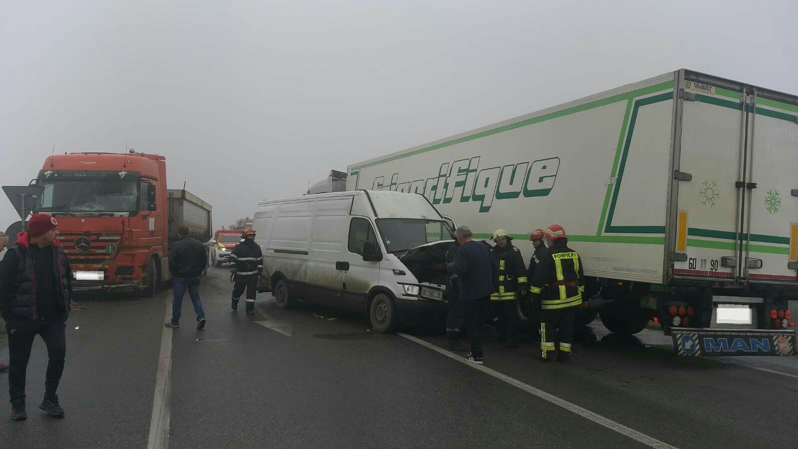 Două camioane și un microbuz de transport marfă au fost implicate într-un accident de circulație pe șoseaua ocolitoare a Lugojului.
