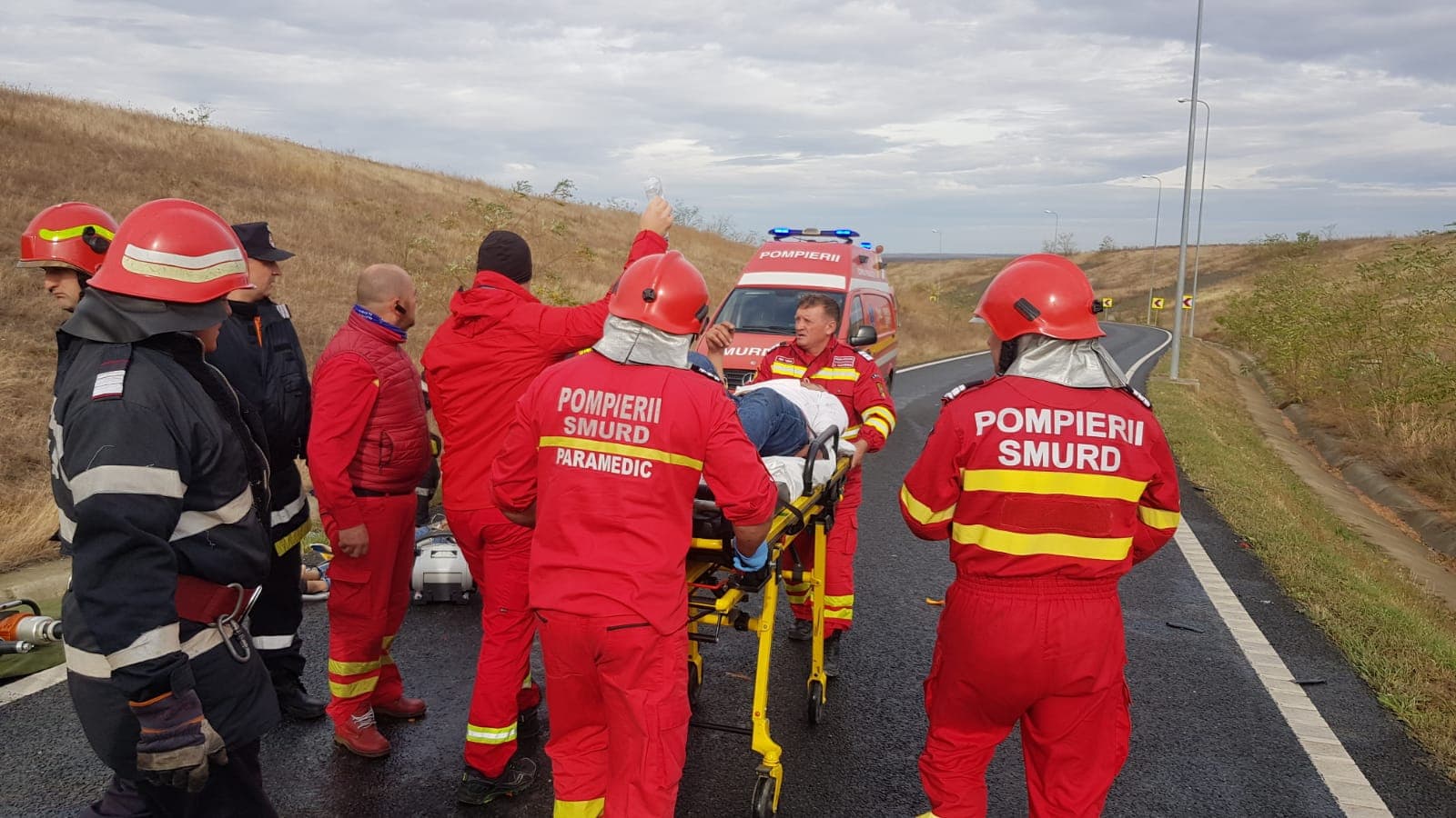 La faţa locului a venit şi elicopterul SMURD şi s-a intervenit cu trei autospeciale de intervenţie ASAS cu modul de descarcerare, una SMURD şi una SAJ.