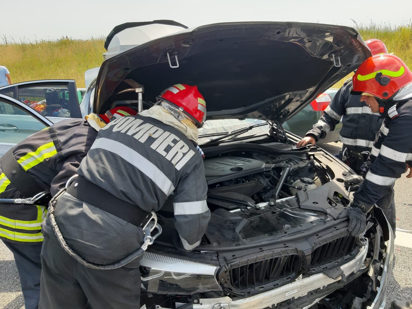 Accidentul s-a produs pe Autostrada A1, la kilometrul 511, pe direcția de mers Orțișoara spre Timișoara. La locul intervenției s-au deplasat 2 autospeciale, 2 echipaje SMURD, un ofițer și 14 subofițeri, transmite ISU Banat.