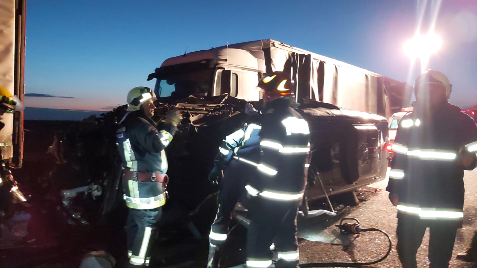 Purtătorul de cuvânt al Inspectoratului pentru Situaţii de Urgenţă (ISU) Arad, George Pleşca, spune  că un microbuz cu numere de Cehia, care se îndrepta spre graniţă, a intrat într-un TIR care staţiona în coloană la doi kilometri de frontieră.