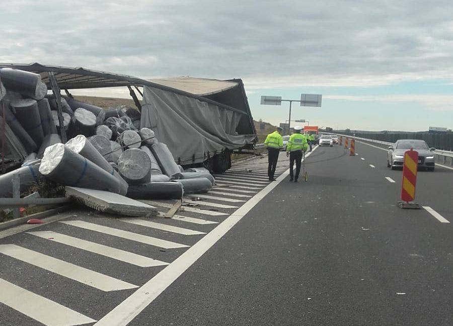 Două persoane au ajuns la spital după ce au fost implicate într-un accident rutier pe autostrada A1 în apropiere de Traian Vuia.