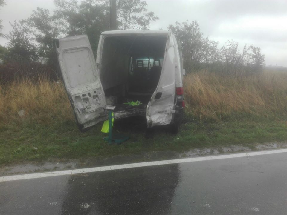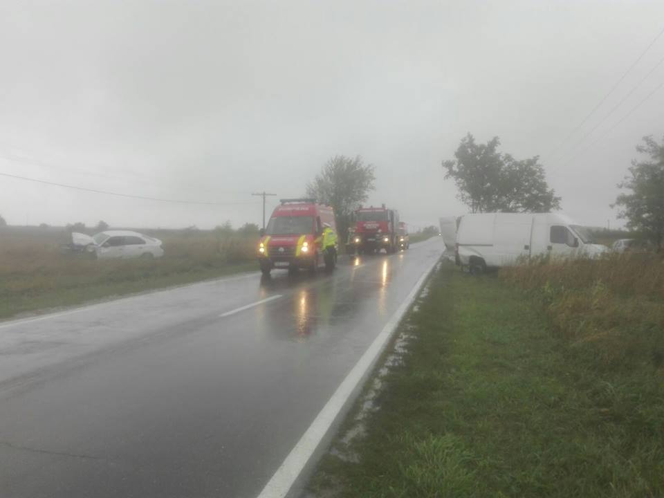 În accidentul, produs în condiţii de drum umed, au fost implicate au autoturism şi o autoutilitară.