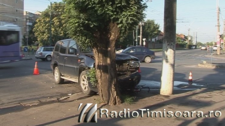 Un autoturism de teren Nissan venea pe bulevardul Dâmbovița, dinspre bulevardul Liviu Rebreanu. Pe culoarea verde a semaforului, autoturismul de teren șia continuat drumul, dar, din sens opus, un alt autoturism Opel a vrut să vireze stânga pe Banatul, fără să acorde prioritate de dreapta.În urma impactului, cele două mașini au fost proiectate pe trecerea de pietoni unde se afla un biciclist. Tânărul, de 21 de ani, a reușit să sară de pe bicicletă în ultima clipă, altfel riscând să fie strivit între Nissan și un copac de pe marginea drumului.