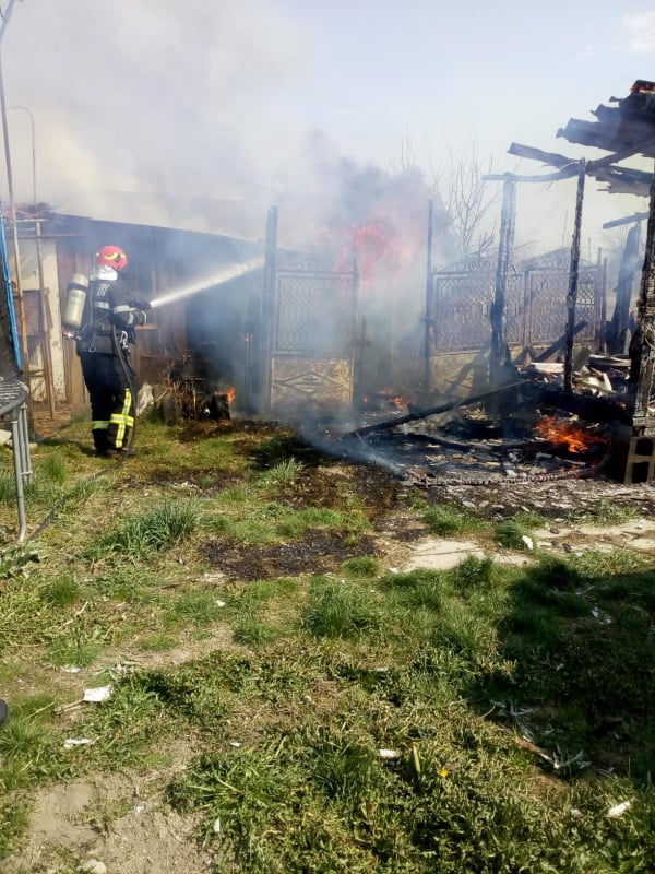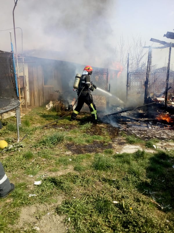 Pompierii au fost chemați să intervină la stingerea unui incendiu care a cuprins anexa unei case. La locul intervenției s-a deplasat o autospecială de stingere cu apă și spumă, un echipaj SMURD și 8 subofițeri.