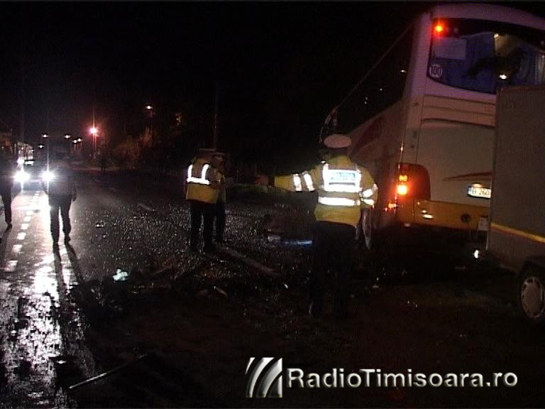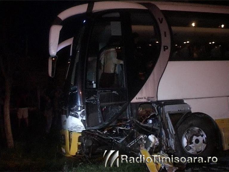 În urma impactului, autoturismul a fost proiectat peste linia de tramvai, într-un şant de la marginea DN 7, iar autocarul a intrat cu roţile din faţă în şant.