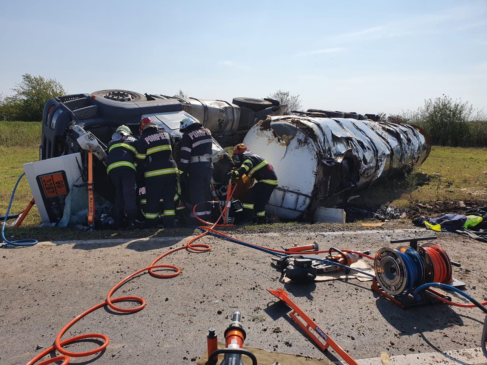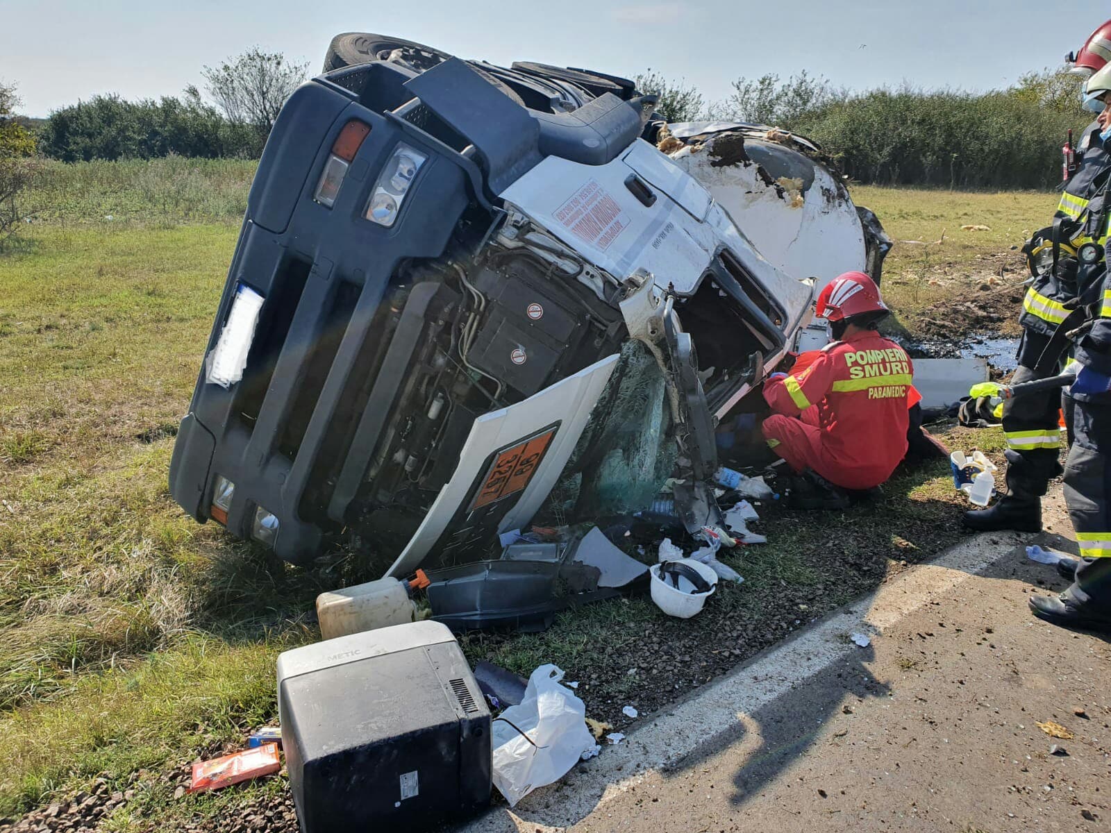 O autocisternă încărcată cu bitum s-a răsturnat pe DJ 693B, pe raza localităţii Stamora Română, şoferul rămânând încarcerat.