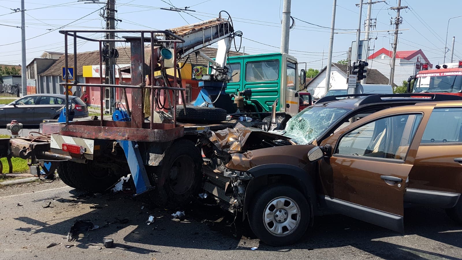 În urma impactului, conducătorul autoturismului a rămas blocat, fiind eliberat de echipajul de descarcerare. Bărbatul, care prezenta leziuni la mâini și picioare, a fost transportat la spital de un echipaj SMURD. Șoferul macaralei auto nu a avut nevoie de îngrijiri medicale.