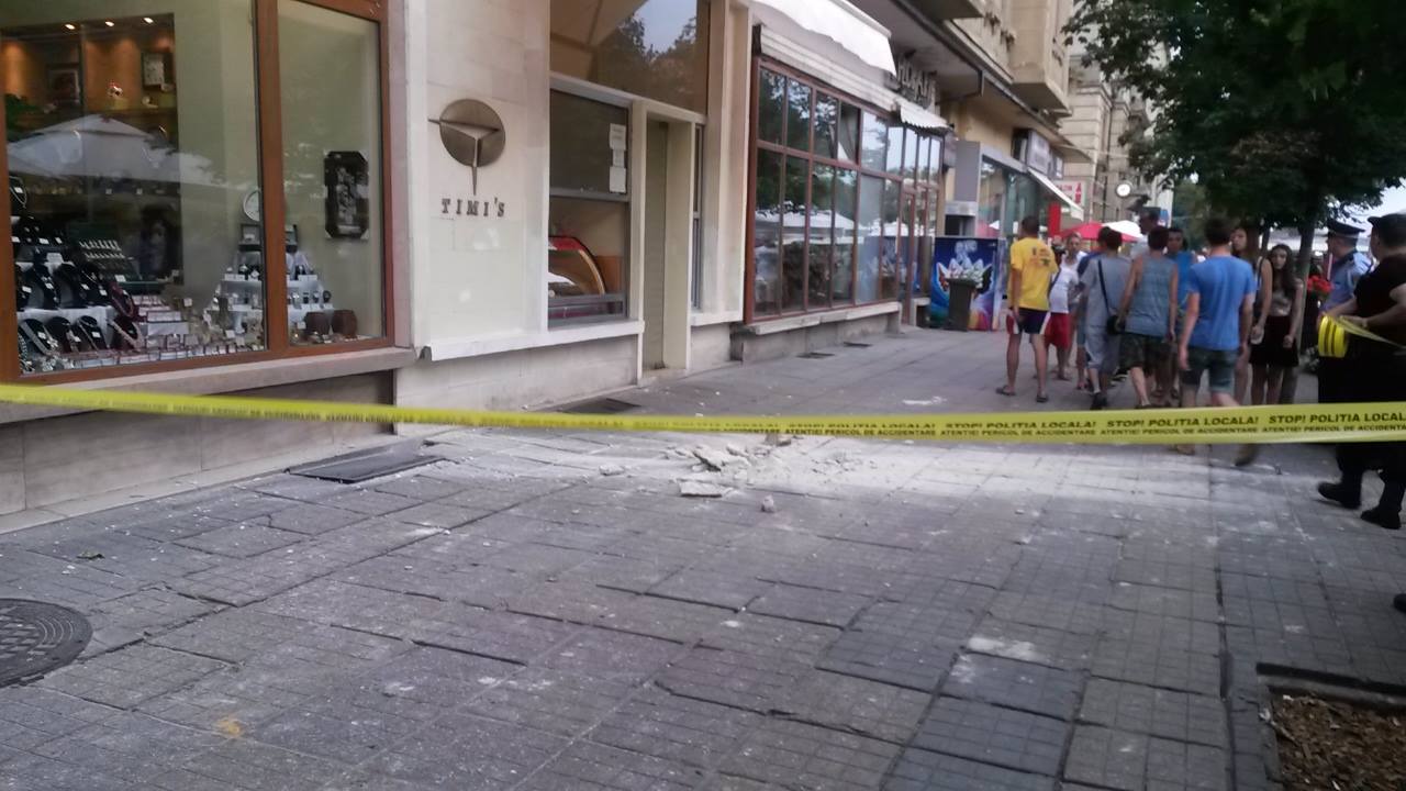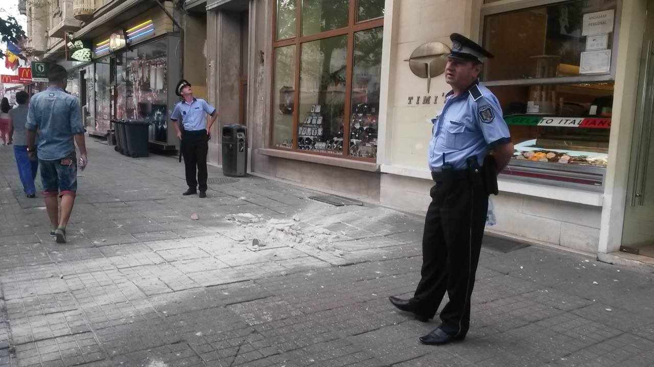 Bucăți din tencuiala unuia din palatele din Piața Victoriei din Timișoara s-au desprins luni seara și au căzut pe caldarâm. Trecătorii din centrul Timișoarei au putut vedea cum părți din decorațiunile de pe fațada Palatului Loffler se prăbușesc pe trotuar. Poliția Locală a împrejmuit zona pentru a împiedica accesul trecătorilor. Din fericire, nicio persoană nu a fost rănită.