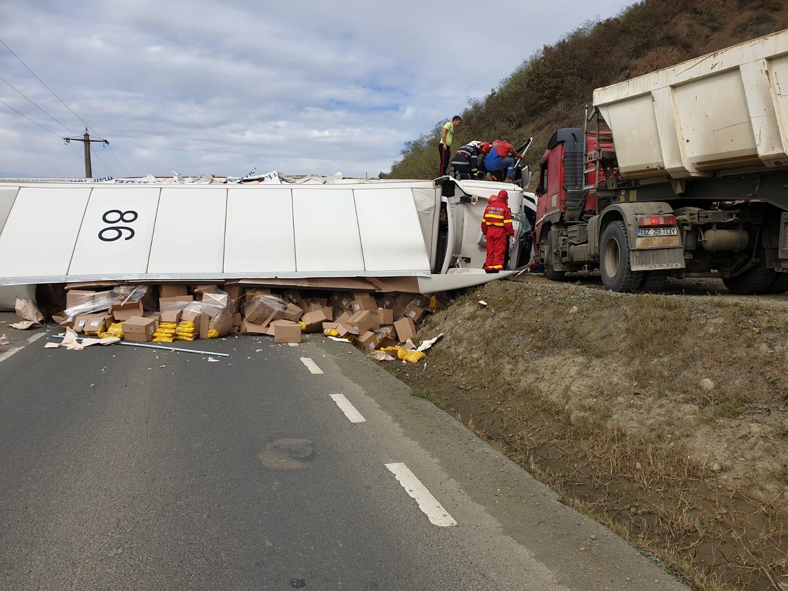 Circulația rutieră a fost blocată pe Drumul Național 7 în urma unui accident de circulație.