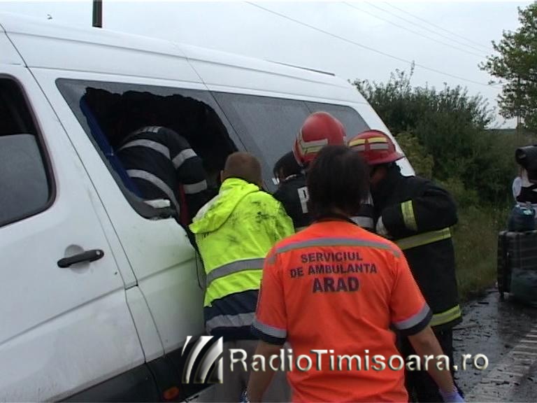 În microbuzul care efectua o cursă Satu-Mare – Timişoara se aflau 11 persoane. În urma accidentului, alte 10 persoane au fost rănite. Nouă persoane între care doi copii de 9, respectiv 14 ani, au fost transportate la Spitalul Judeţean din Arad, iar cea de-a zecea a fost preluată cu elicopterul SMURD şi dusă la Spitalul Judeţean din Timişoara, spune directorul medical al Spitalului din Arad, dr. Adrian Wiener.