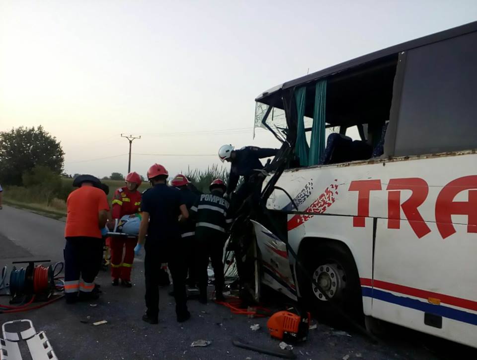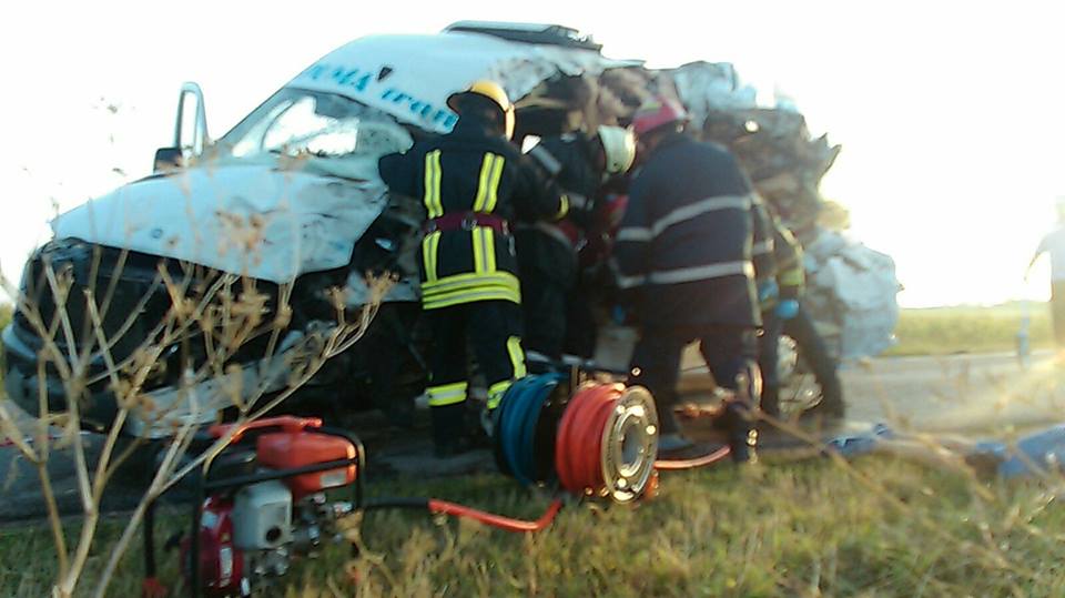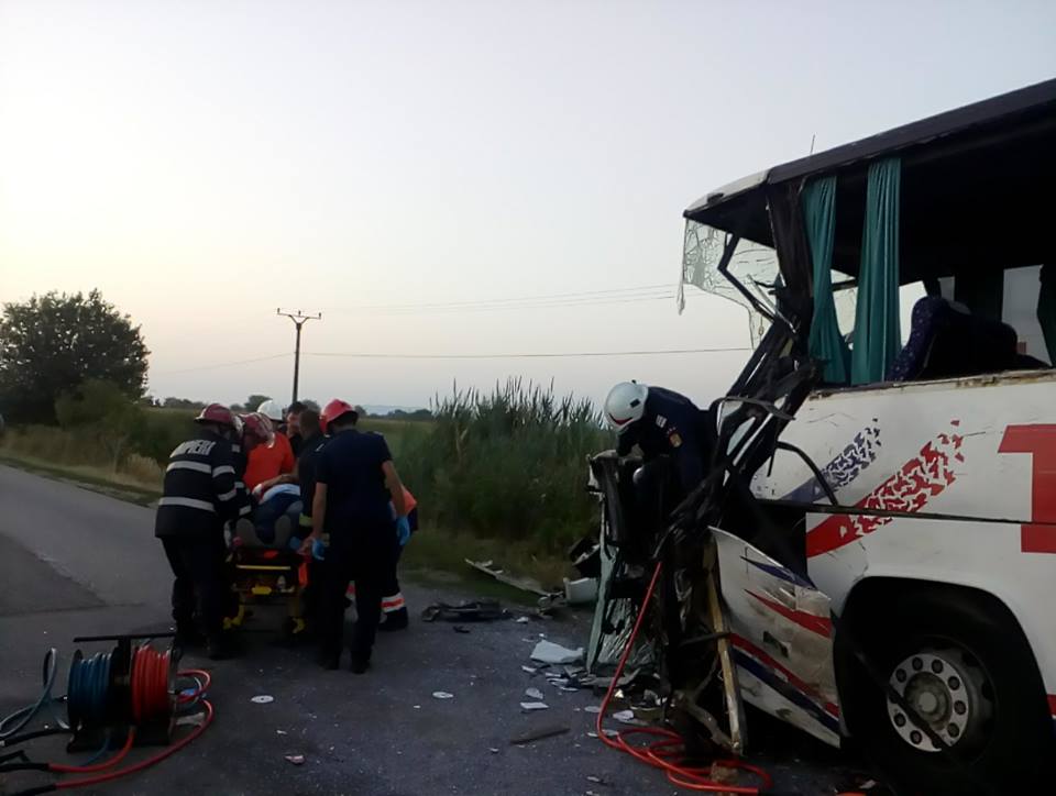 Doi morți și zece răniți, după ciocnirea violentă între un autocar și un microbuz în Arad