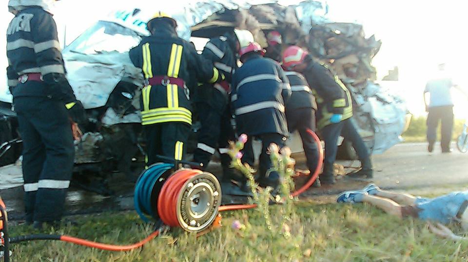 La faţa locului acţionează un echipaj de descarcerare, patru ambulante SMURD, o autospecială de stingere a incendiilor şi trei echipaje ale Serviciul de Ambulanţă Judeţean Arad.