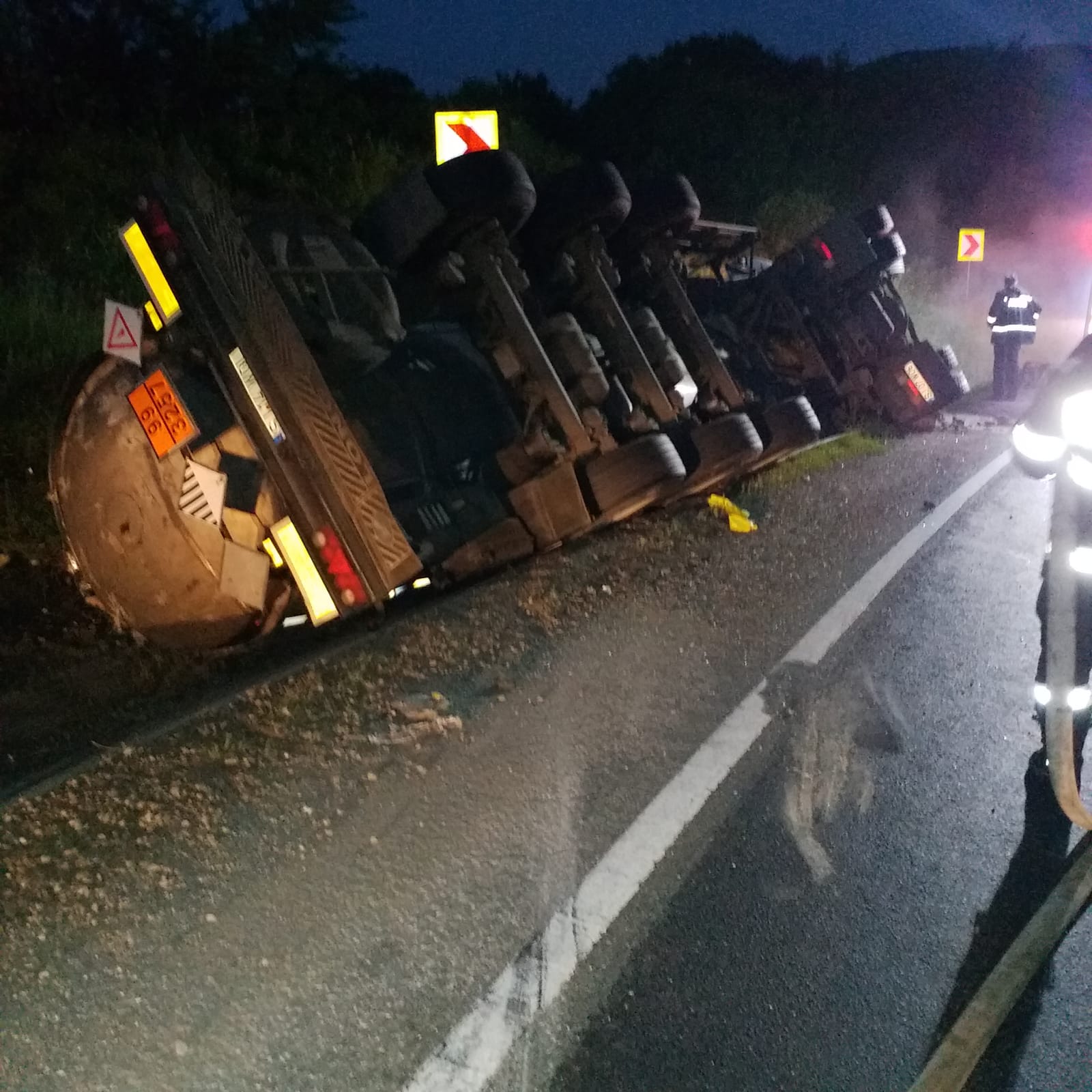 Un tir cisternă încărcat cu bitum lichid s-a răsturnat în afara părții carosabile. Potrivit ISU Caraș-Severin, din autocamion, sunt scurgeri de lichid din cisternă, fără incendiu. La fața locului, s-au deplasat trei echipaje de pompieri de la Detașamentul Caransebes cu o autospecială de stingere cu apa si spumă, o autospeciala de descarcerare si un echipaj Smurd iar de la Detașamentul Resita un echipaj CBRN. De asemenea, la locul accidentului se afla si o ambulanta.