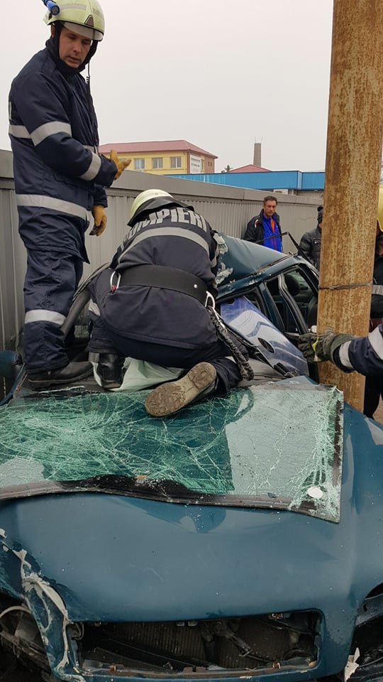 Cel de-al doilea accident s-a produs la doar două minute. În acest caz, un bărbat de aproximativ 30 de ani a intrat cu maşina în stâlp şi a rămas încarcerat. La locul intervenției s-au deplasat două autospeciale cu modul de descarcerare, 7 subofițeri și o ambulanță SAJ.