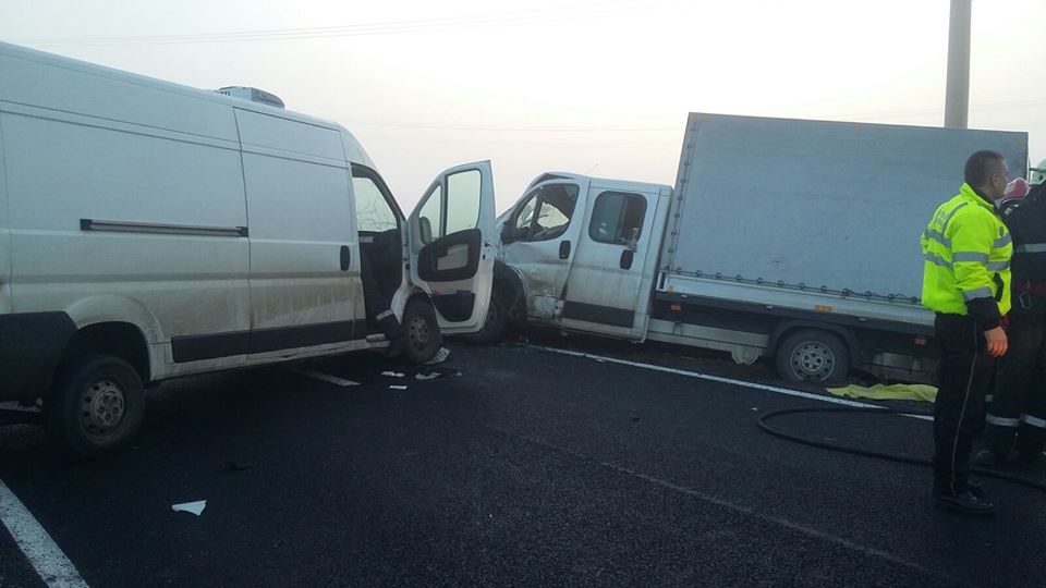 Șoferul unui microbuz care venea dinspre Bucovăț nu a adaptat viteza la condițiile de carosabil acoperit cu polei și, într-o curbă la dreapta, a pierdut controlul volanului. Autovehiculul a intrat pe contrasens unde s-a izbit de o camionetă care circula regulamentar.