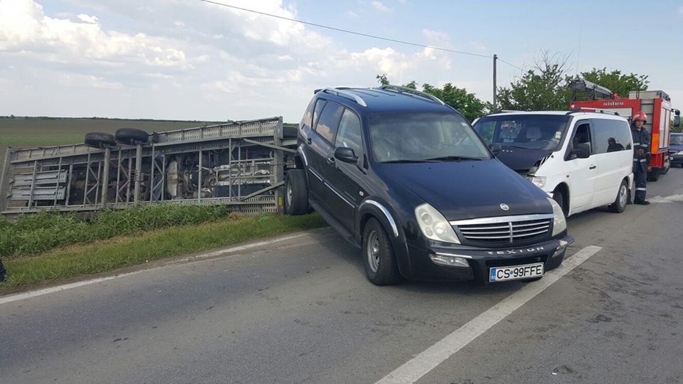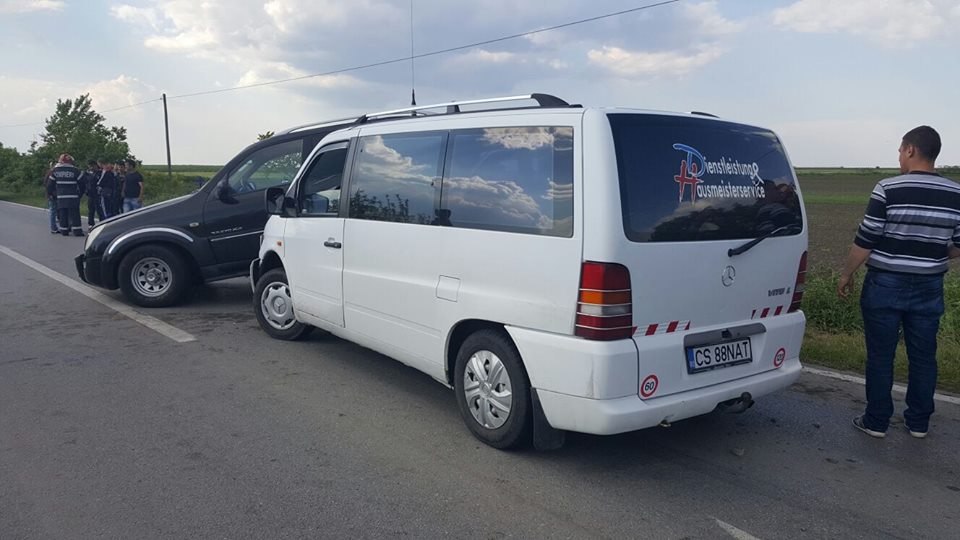 Conform polițiștilor, șoferul autoturismului de teren care venea spre Timișoara a pierdut controlul volanului în zona localității Șandra, a intrat pe contrasens și a fost lovit de microbuz. Autoturismul avea atașată o platformă pe care se aflau alte două mașini. În urma impactului, platforma s-a răsturnat în afara drumului.
