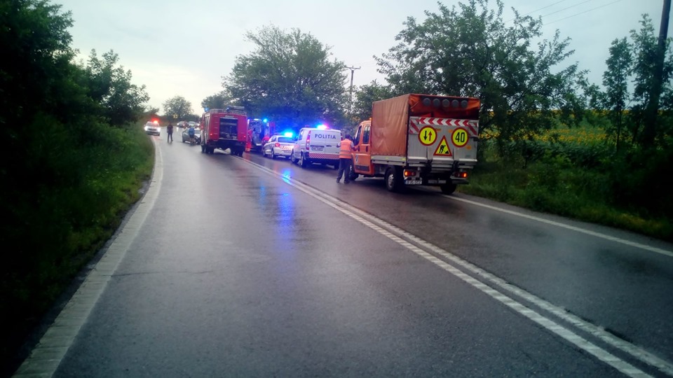 Accidentul s-a produs în această dimineață după ce unul dintre autoturisme ar fi derapat din cauza drumului umed, pătrunzând pe contrasens unde s-a izbit de mașina care venea din sens opus.