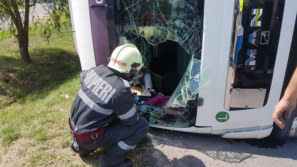 În urma accidentului a rezultat rănirea şoferului care a fost preluat de o ambulanţă pentru a fi transportat la spital.