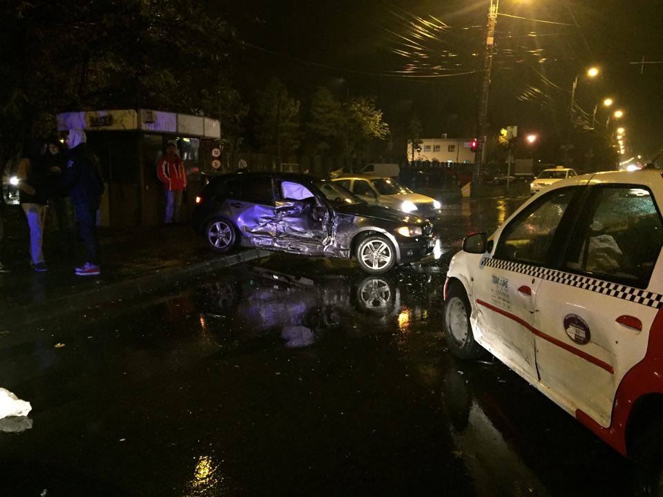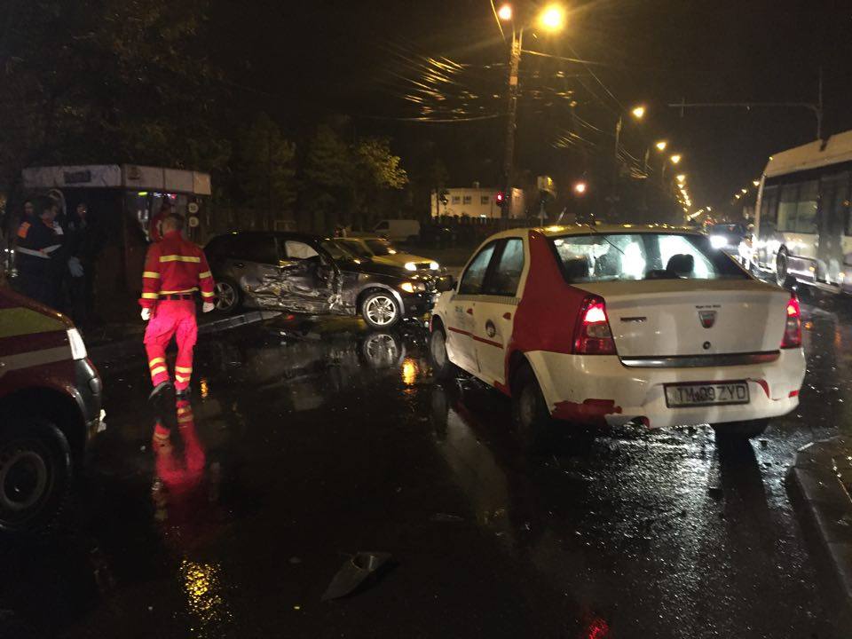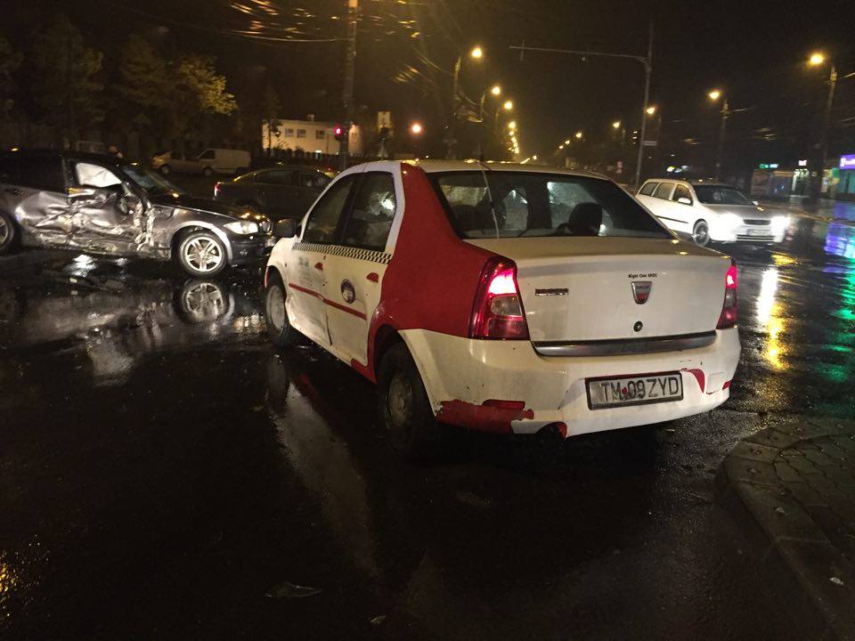 Conform primelor informații, șoferul unui autoturism BMW a virat la stânga de pe Calea Lipovei spre strada Câmpina. În acel moment, a fost lovit de un taximetru care circula dinspre Dumbrăvița și se îndrepta spre mall. Martorii spun că taximetrul ar fi forțat semaforul.